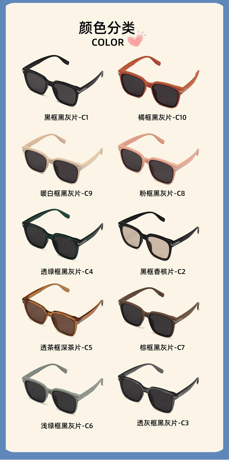 Powder frame black and gray slice-C8, Black frame black Gray chip-C1, Transparent gray frame black and gray fi...