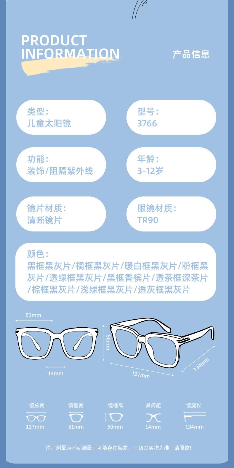 Nuevas gafas de sol TR90 para niños, de moda, para niños y niñas, con protección UV universal YK3766