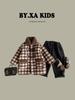 Xianao 2023 Invierno nueva ropa para niños abrigo largo para niños y niñas con forro polar cálido estilo coreano café a cuadros abrigo infantil
