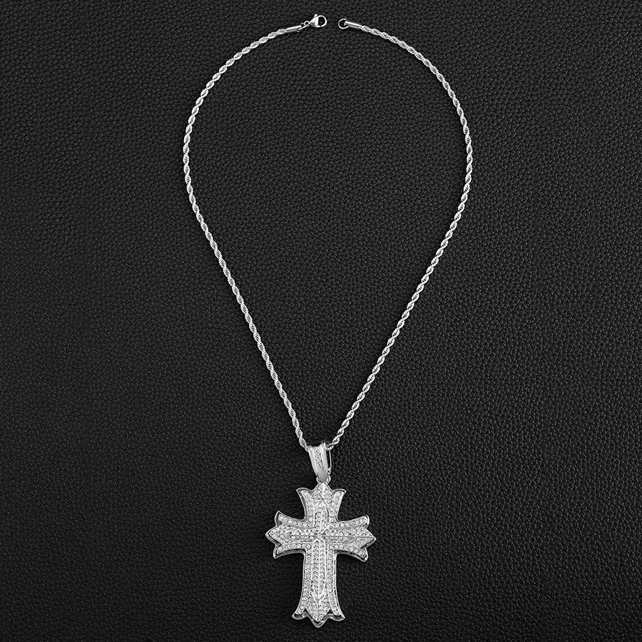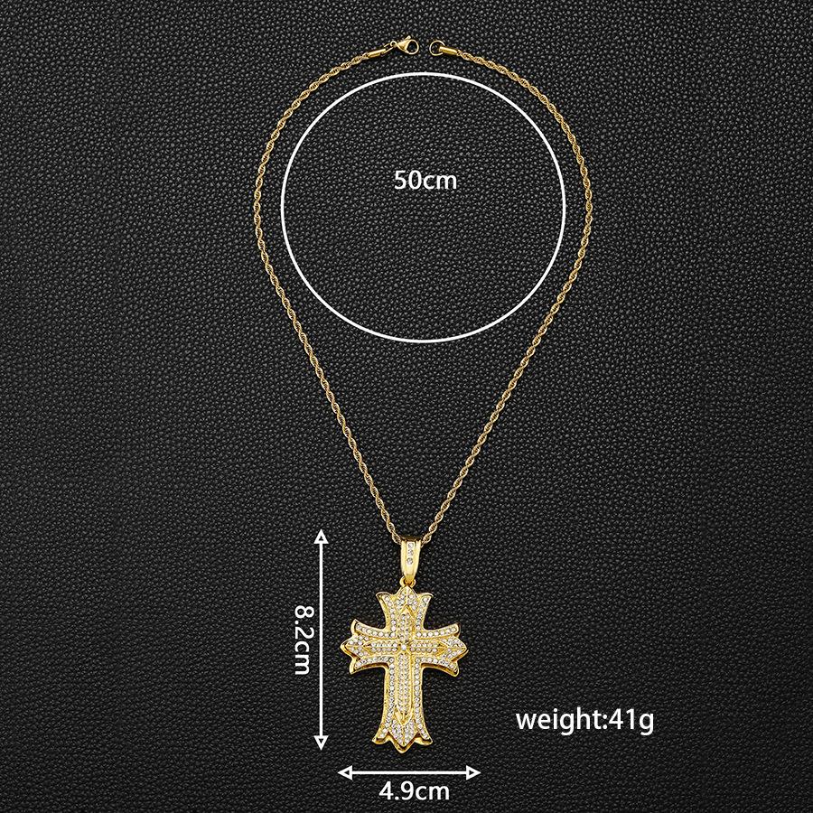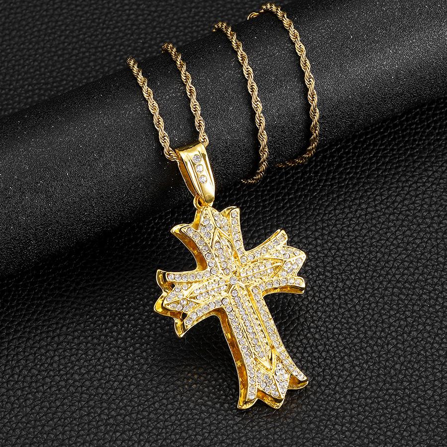 Collar de Cruz Colgante Hip-Hop para Hombre Lleno de Diamantes Producto Nuevo Transfronterizo Aleación Versátil Creativa con Colgante de Cadena Twist Venta al por Mayor
