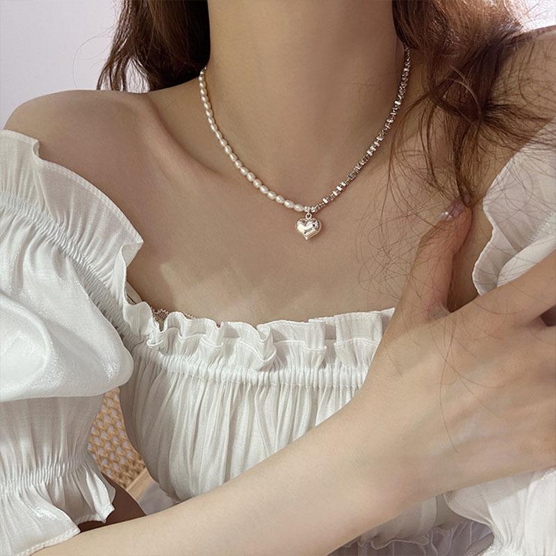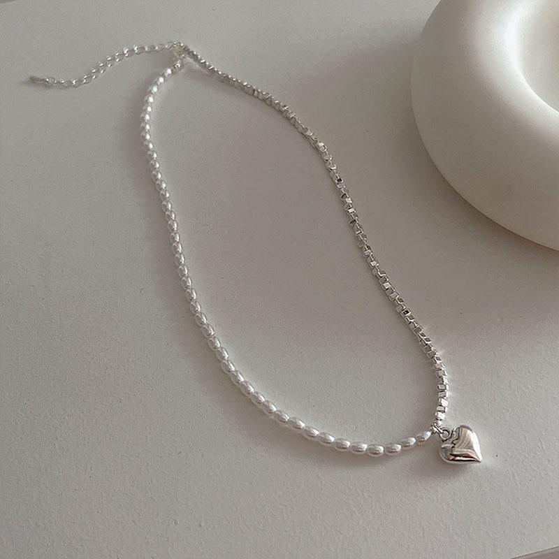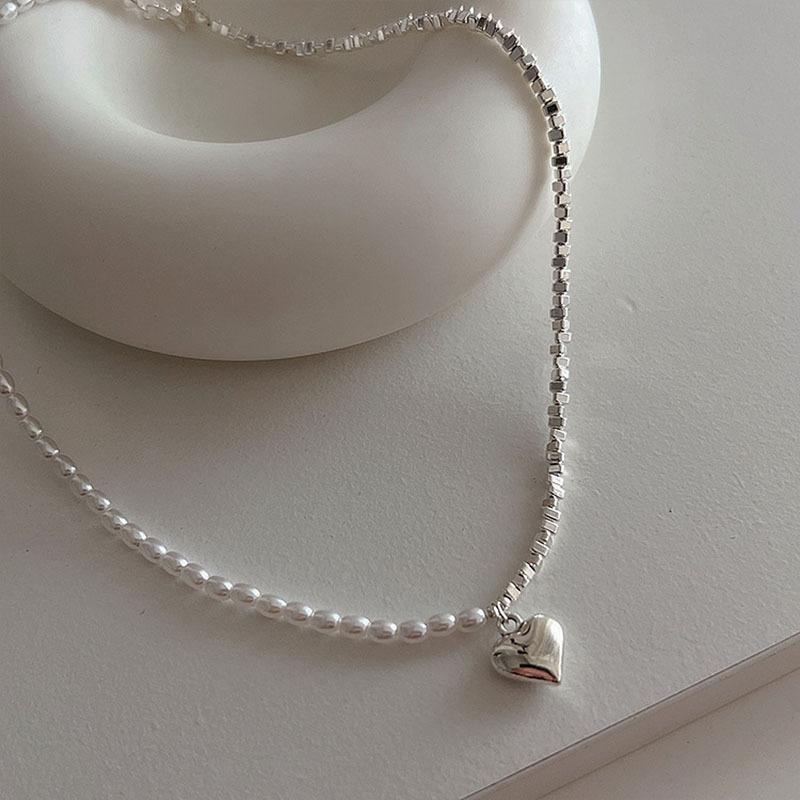 Collar de plata de ley con diseño de nicho de estilo coreano con costuras de perlas y metal roto, estilo ins para mujer, cadena de clavícula sencilla personalizada.