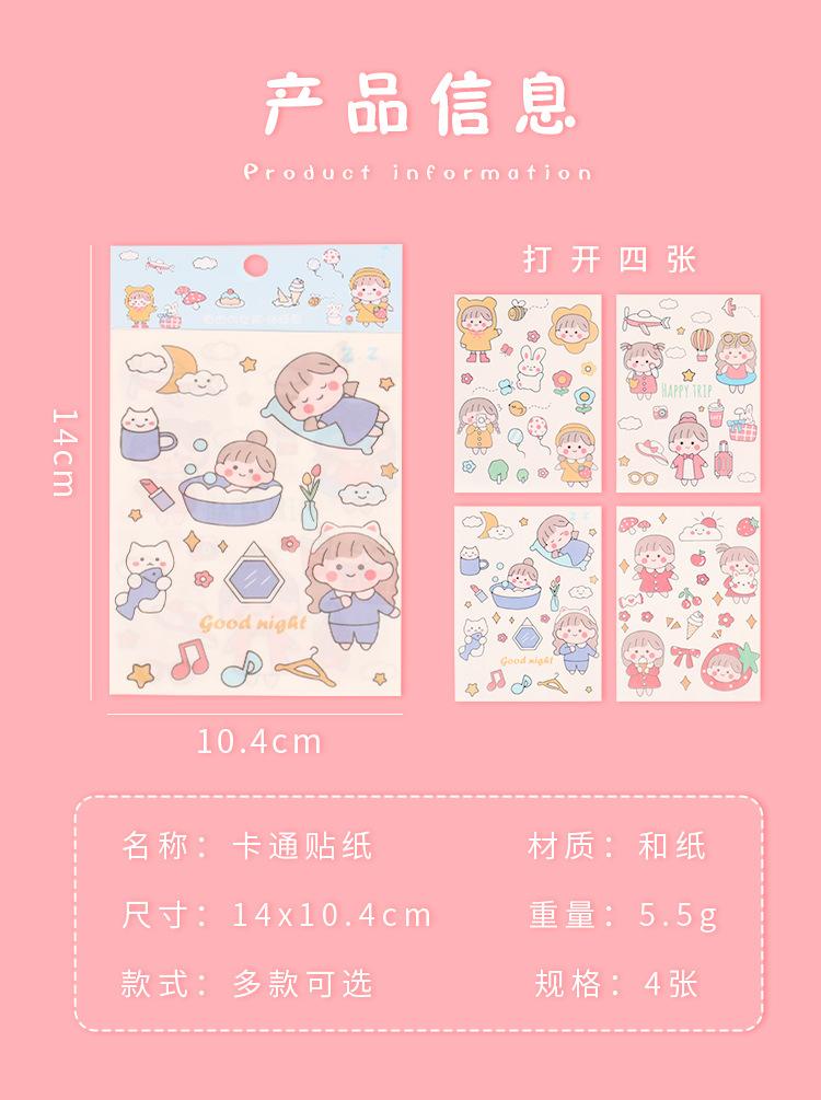 Pegatina de dibujos animados simple estilo japonés, pegatina estilo ins, bolsa, mano, cuenta, chica, bricolaje, pegatina decorativa, diario, libro de trabajo, pegatina de pared
