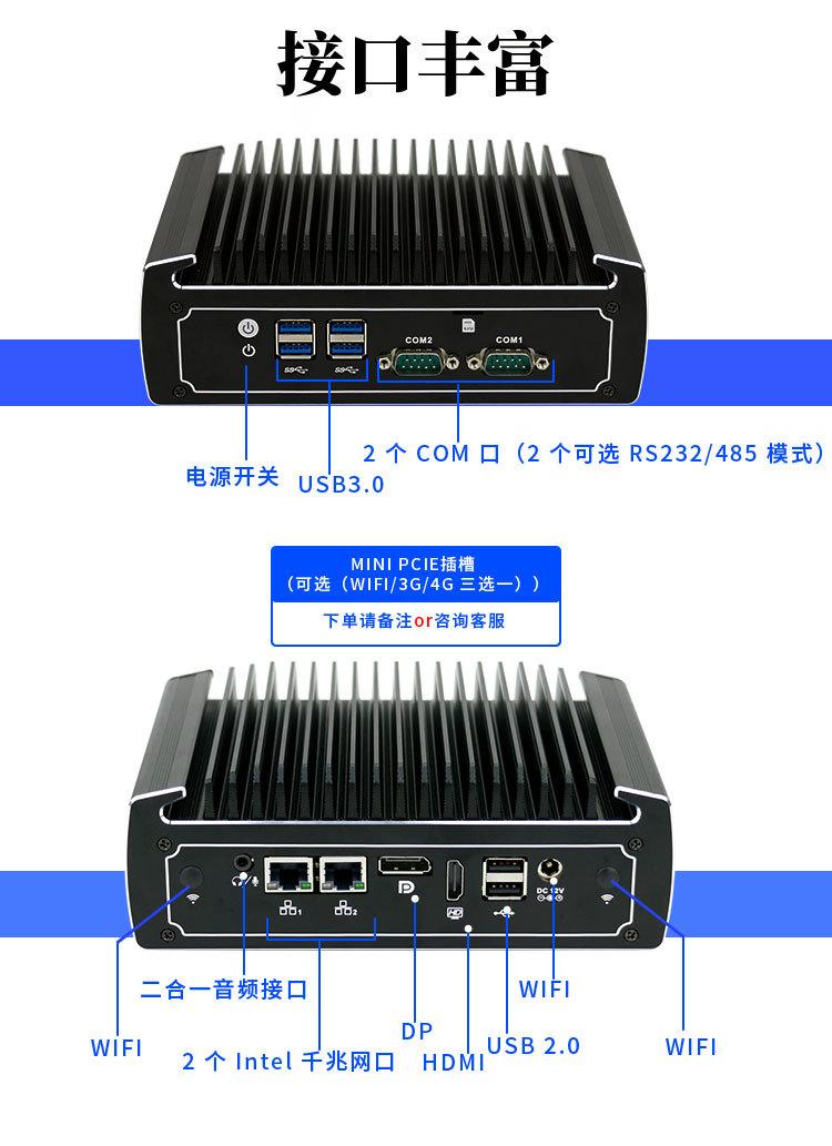 Minicomputadora industrial de control Yanling N15, silenciosa, sin ventilador, con procesador Core i5 de cuatro núcleos duales integrado.