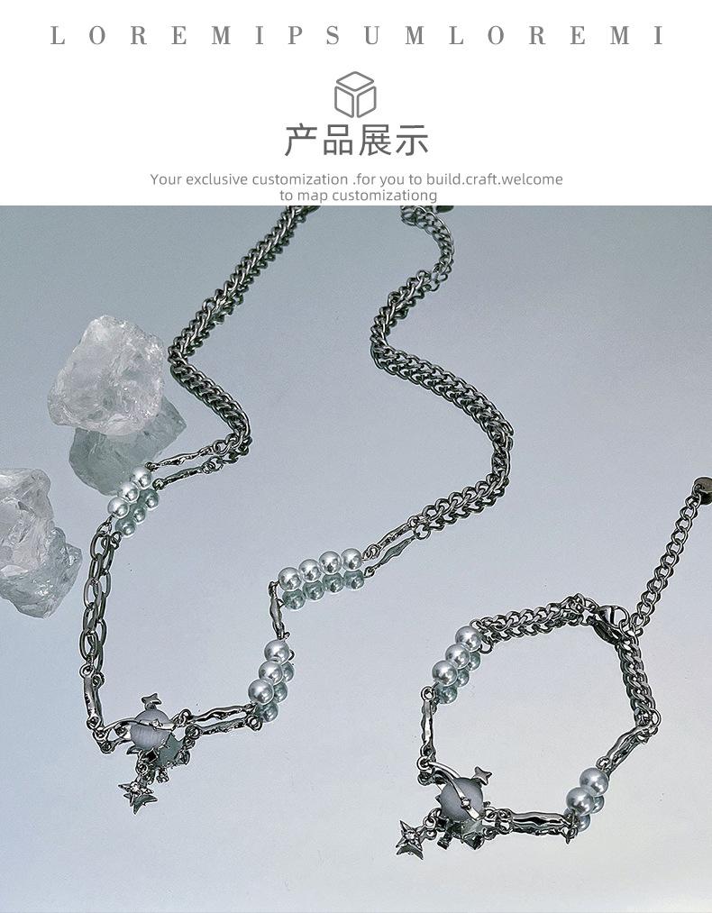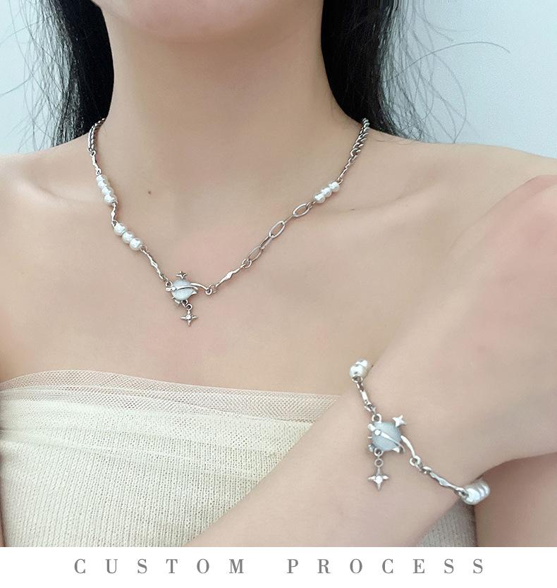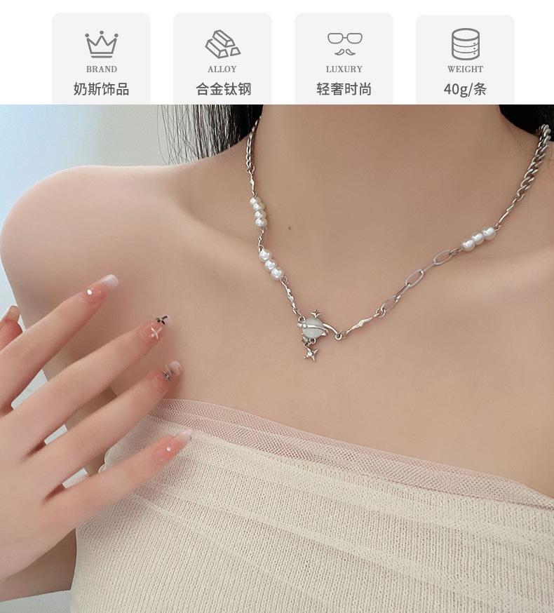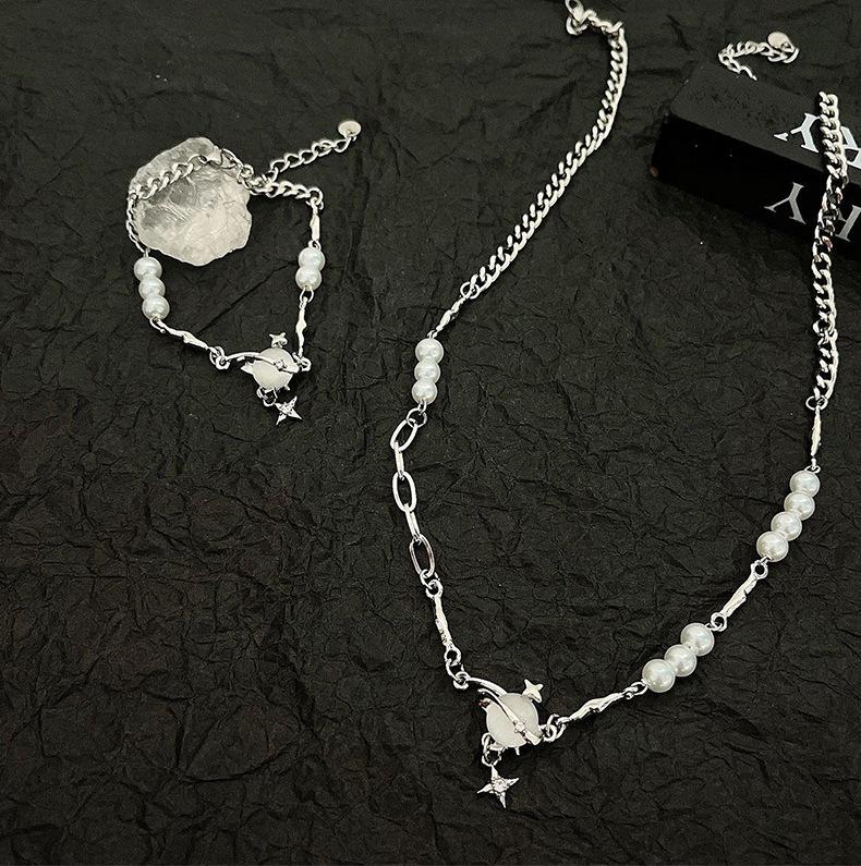 Nueva pulsera minimalista de perlas con costuras de Niche, elegante colgante de ópalo de planeta, collar de clavícula, accesorios para mujer