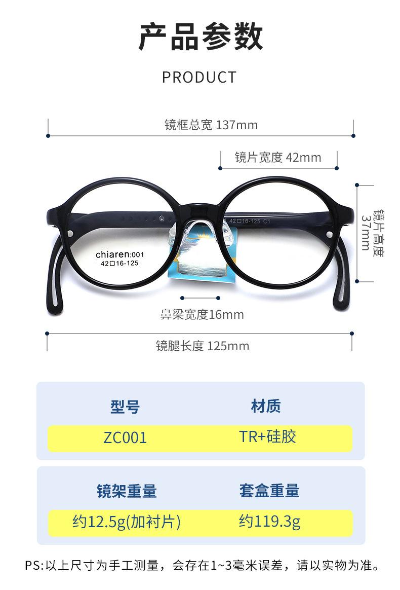 Armazón de gafas para niños ZC001 armazón redondo armazón de gafas TR compañero de lente funcional estuche patilla de silicona para gafas armazón de gafas antideslizante