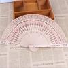 La altura del abanico es de 20 cm, el ancho abierto es de 34.8 cm (medición manual), y hay pequeños orificios en el lateral para que los invitados cuelguen cuerdas pequeñas.