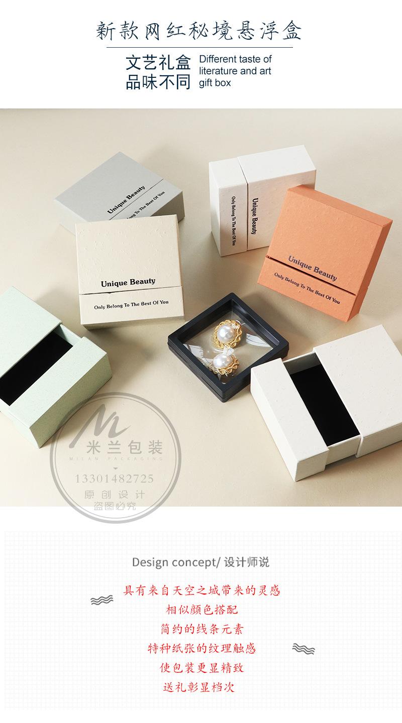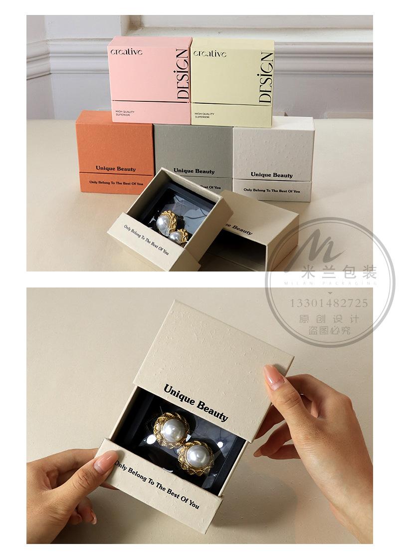 Caja Cajón Secreta Extraíble Estampado en Caliente Punto Venta al Mayoreo Textura de Partículas Aretes Pe Film Caja de Joyería Suspendida