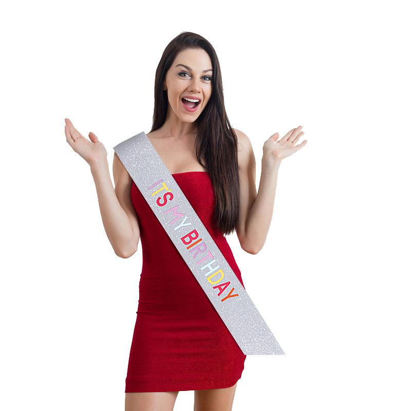 Correa de etiqueta para el hombro, tela no tejida con purpurina para fiesta de cumpleaños de moda europea y americana, para reina de cumpleaños, cumpleañera |