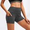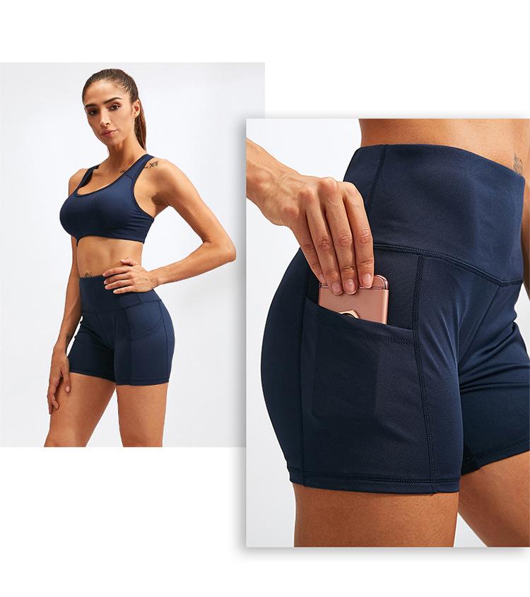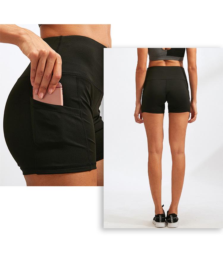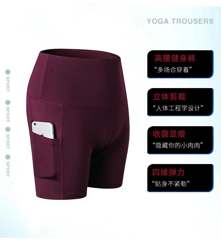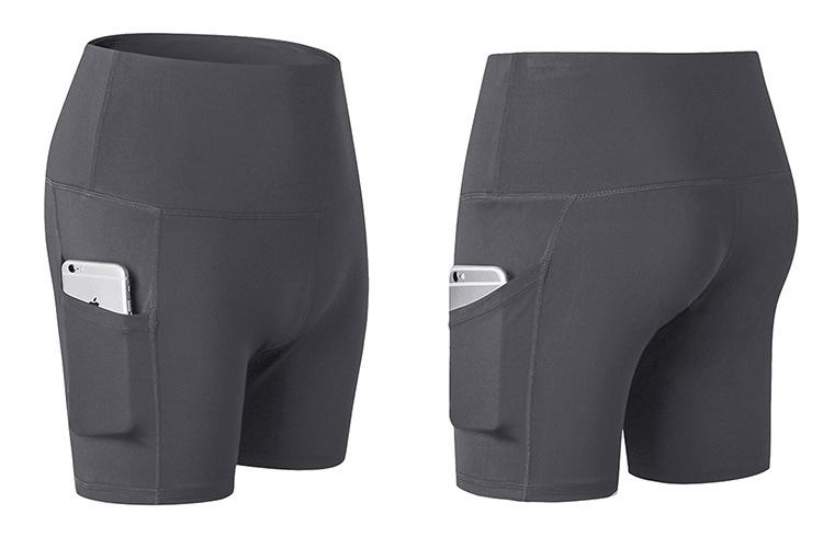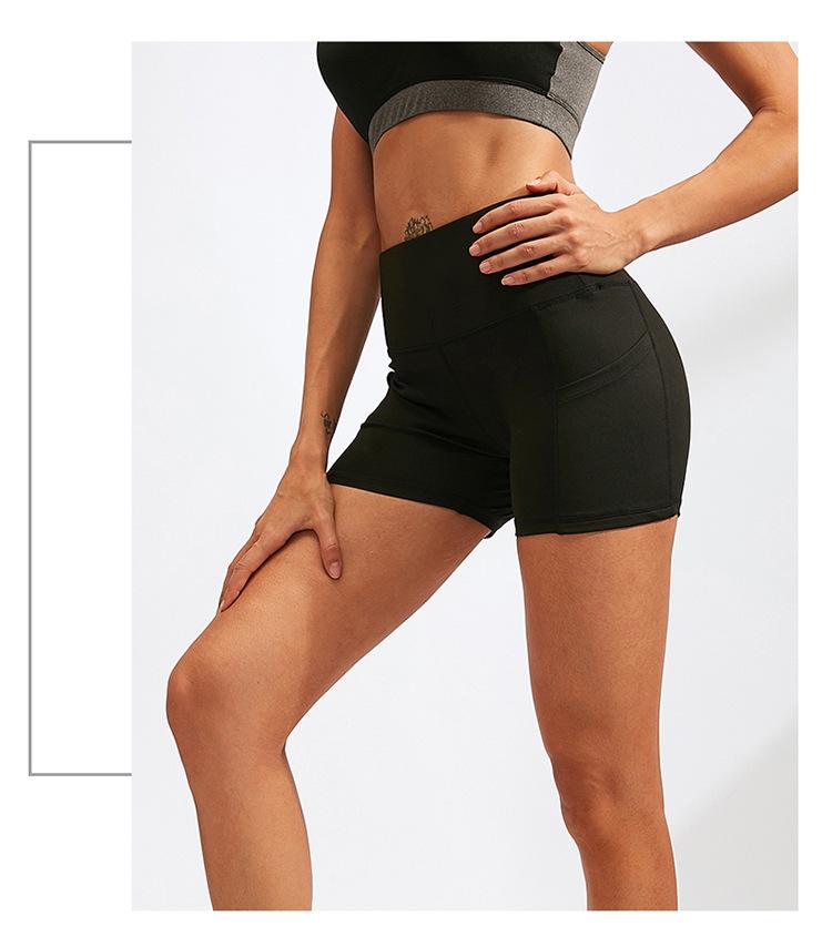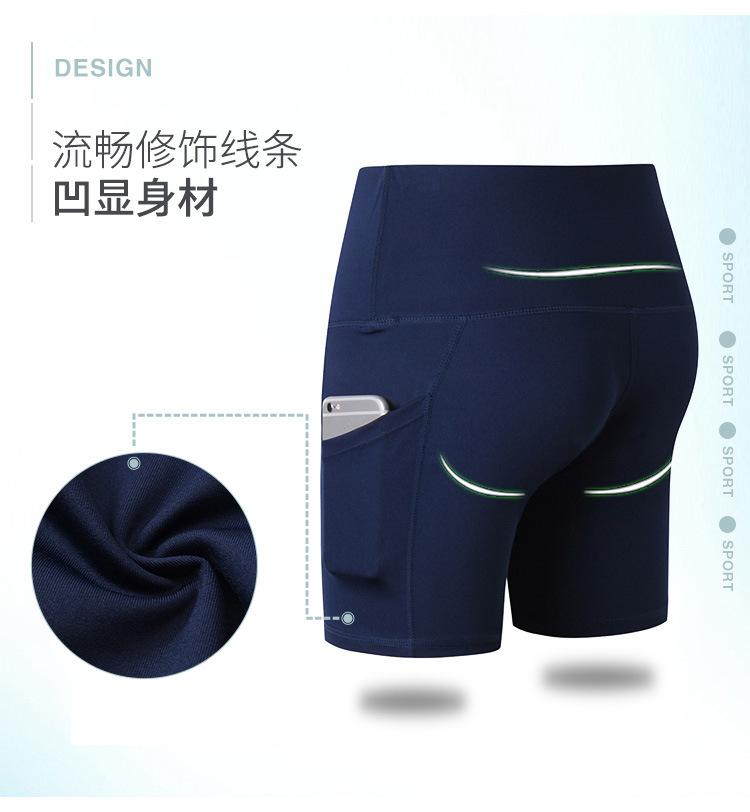 Pantalones de Yoga de Cintura Alta para Mujer con Bolsillos Mallas de Entrenamiento para Correr de Secado Rápido Elásticos Fitness Shorts de 3 Puntos 2049