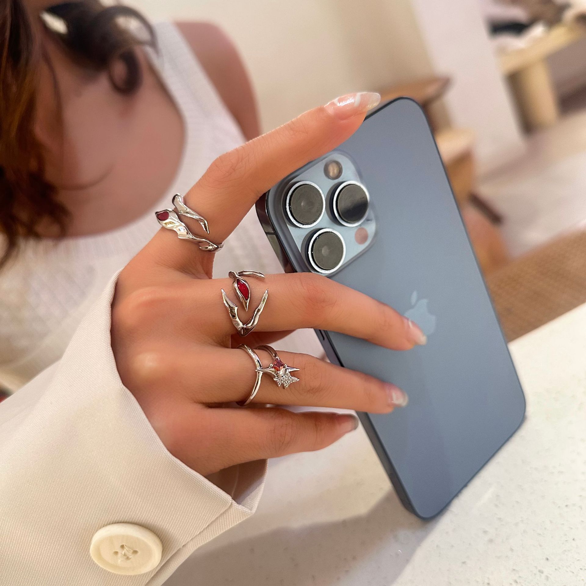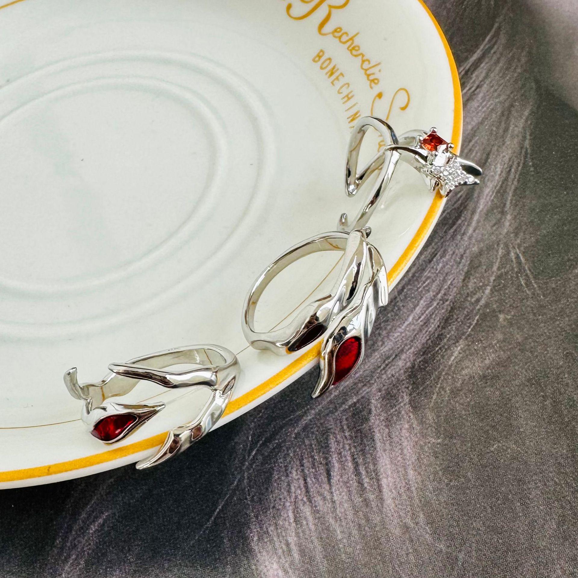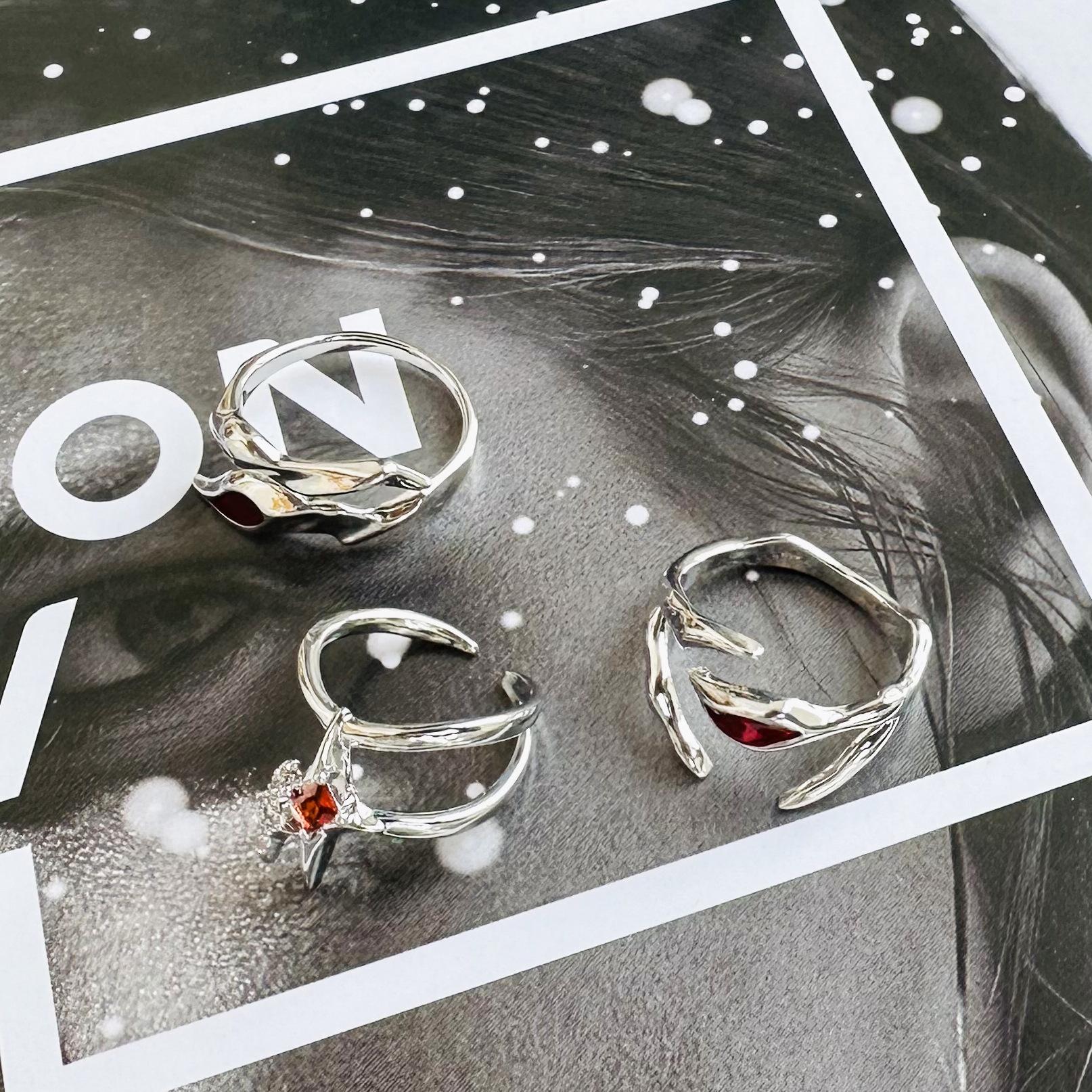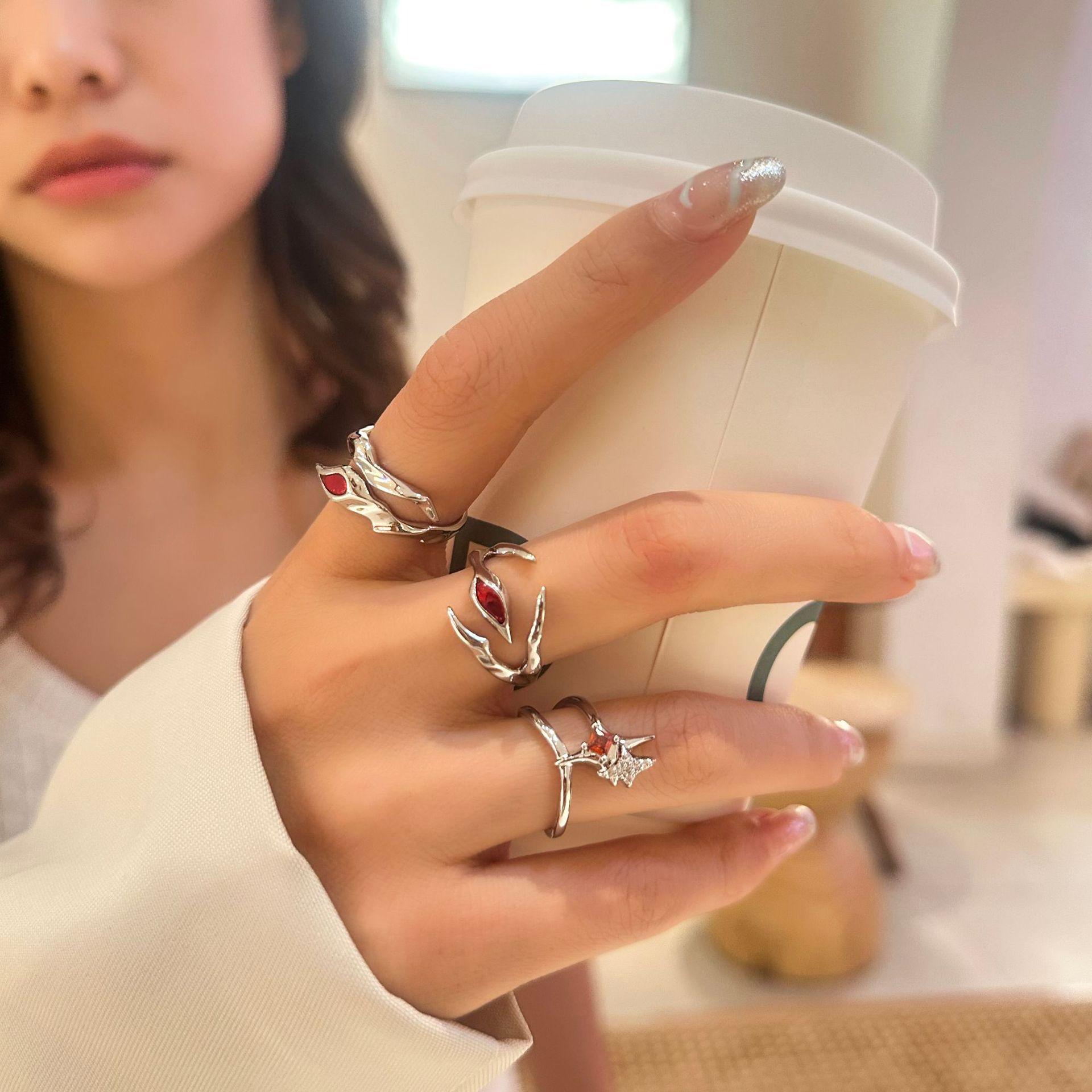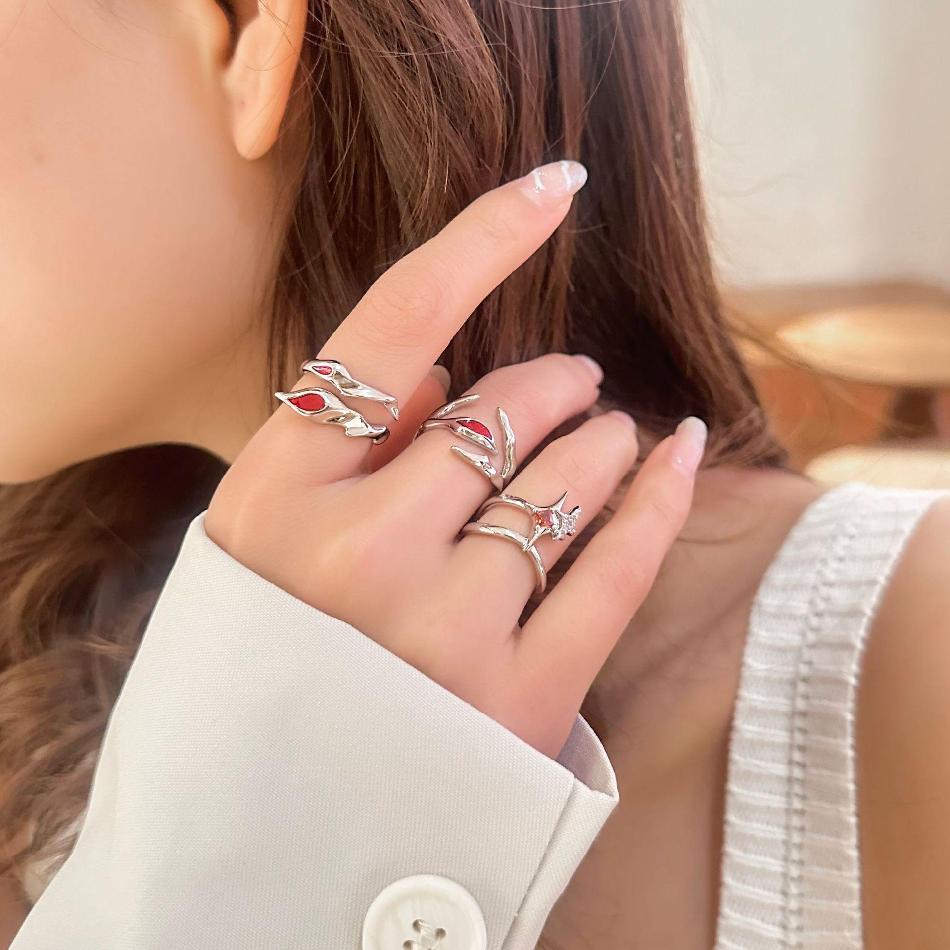 Anillo abierto de circonita roja dulce y fresco de estilo hip hop europeo y americano para mujer, nuevo diseño de nicho, anillo de dedo índice avanzado y sencillo que combina con todo.