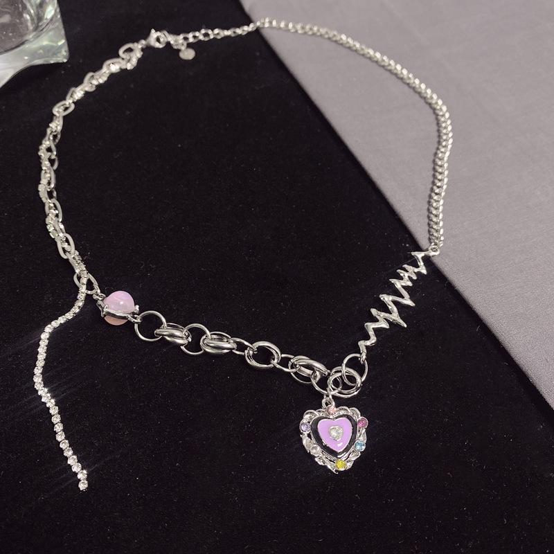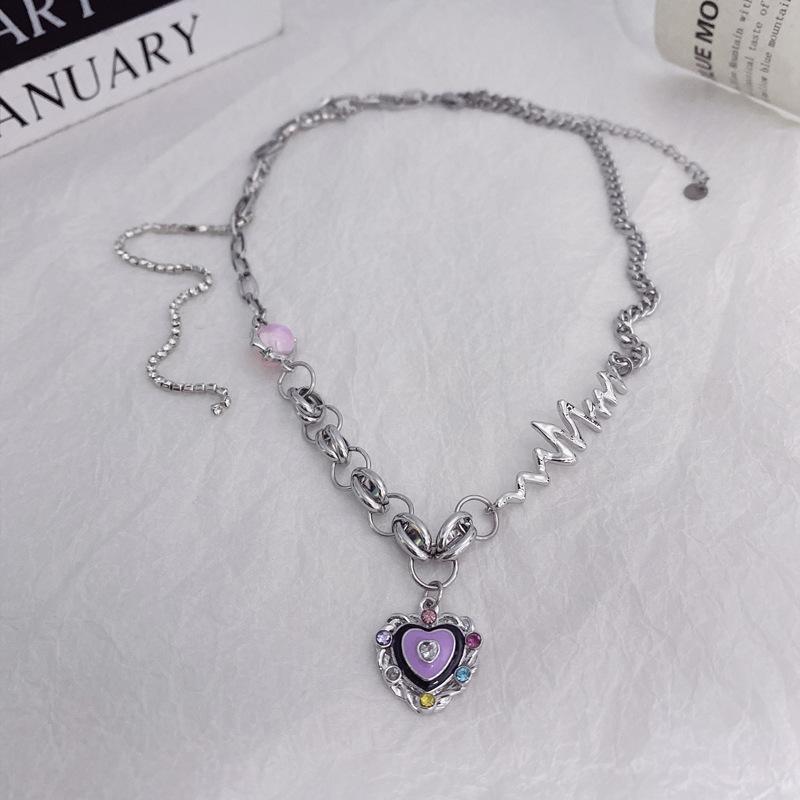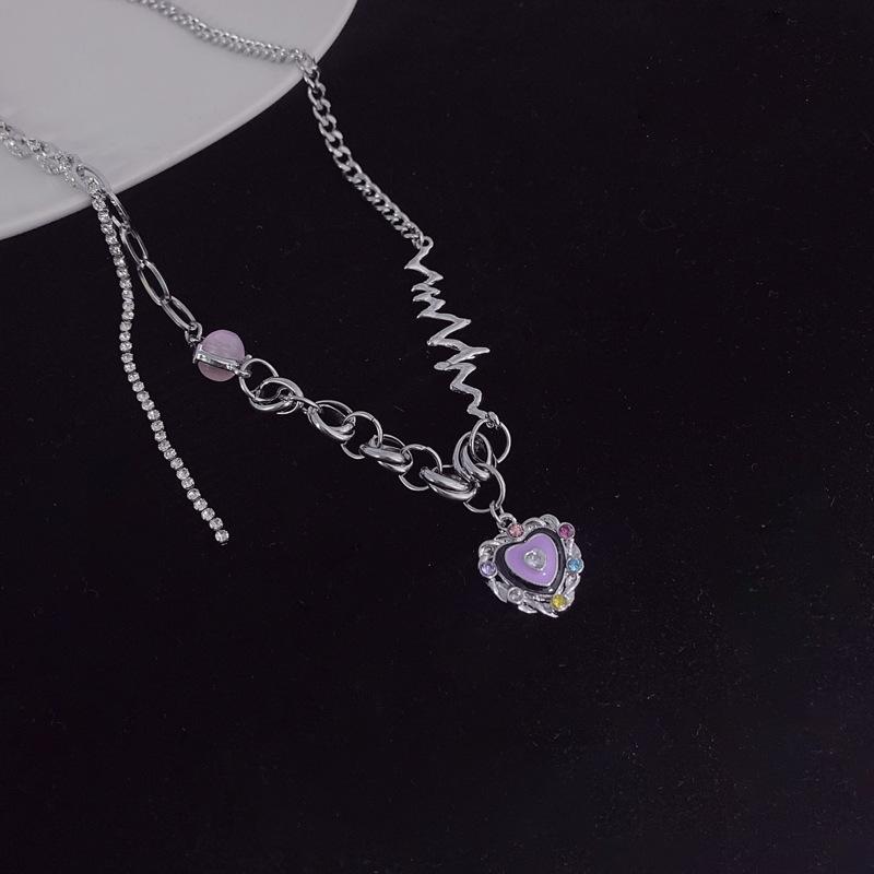 Collar con colgante de corazón morado, estilo chica dulce, fresca y sexy, con diseño de nicho para mujer, colgante avanzado, temperamento simple, collar de moda