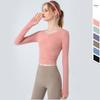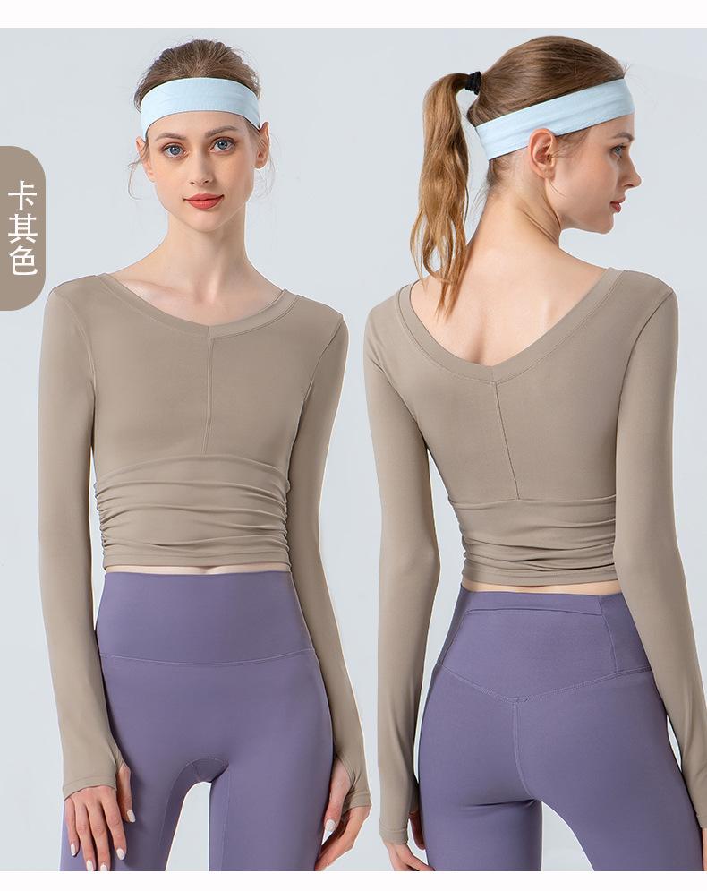 Traje de yoga personalizado de manga larga con efecto nube, ajustado y agradable para la piel, con escote en V y top plisado para fitness.
