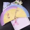 Abanico plegable antiguo Hanfu hecho a mano, abanico chino de bambú pintado, abanico de danza para estudiantes, abanico tallado para mujeres, fábrica al por mayor