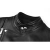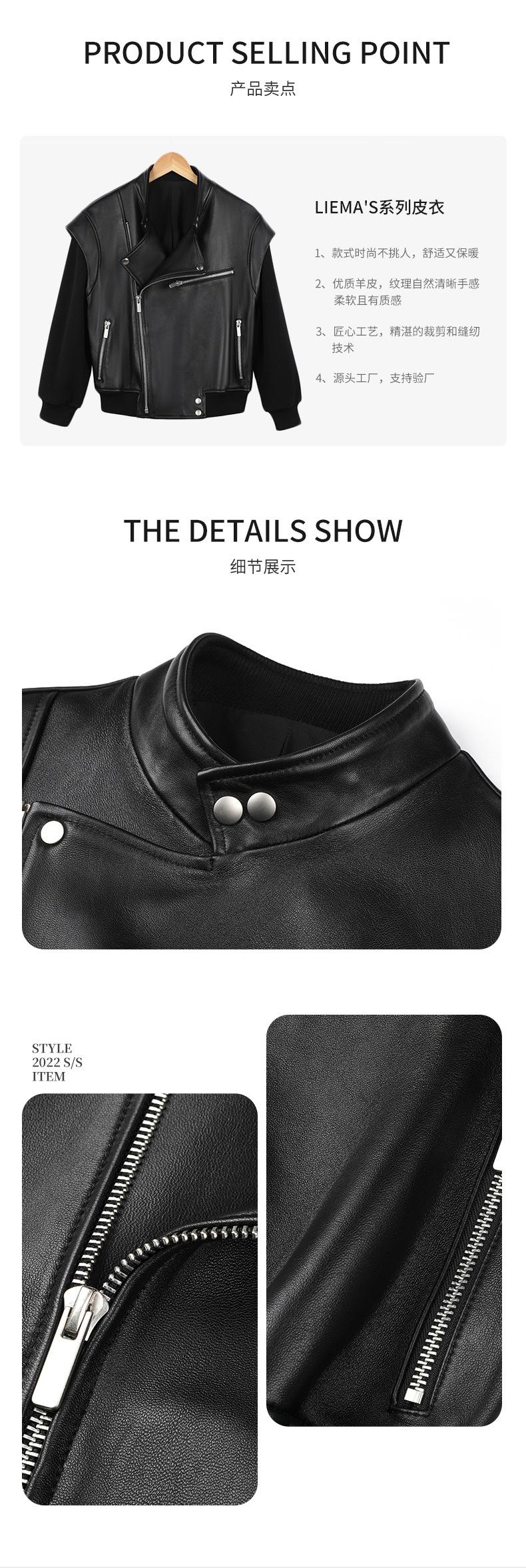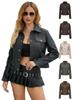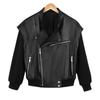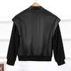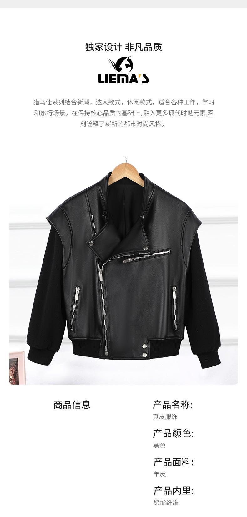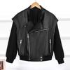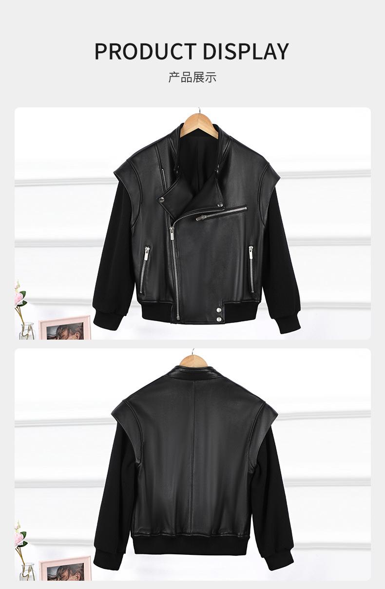 Abrigo de cuero para mujer, de primavera y otoño, con cremallera de manga larga, estilo europeo y americano, con costuras de tela y solapa, para motociclista, personalizable.