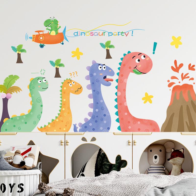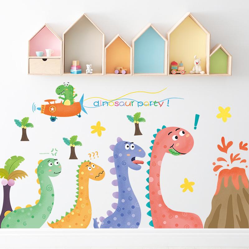 Compra Nuevo LD93013 - Pegatinas decorativas de pared para habitación infantil con diseño de dinosaurios pintados de dibujos animados, para embellecer la pared del jardín de infancia al por mayor en Joom.pro