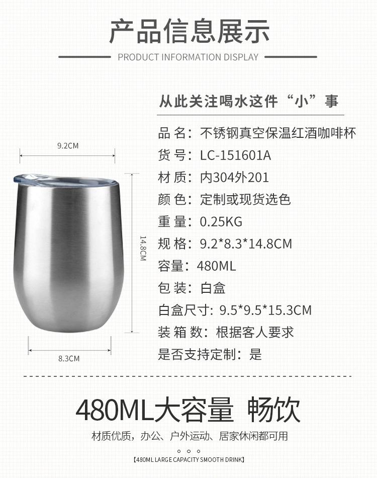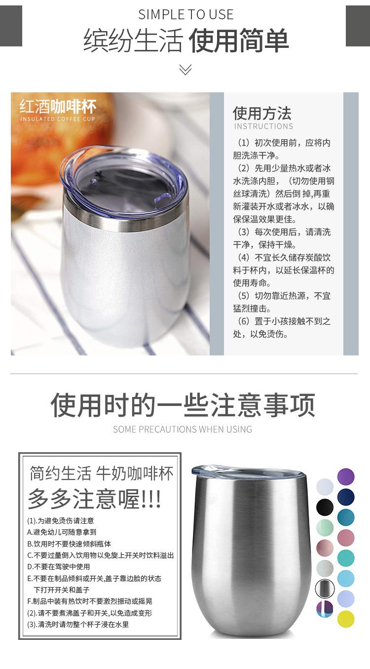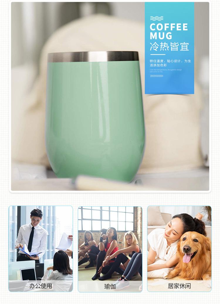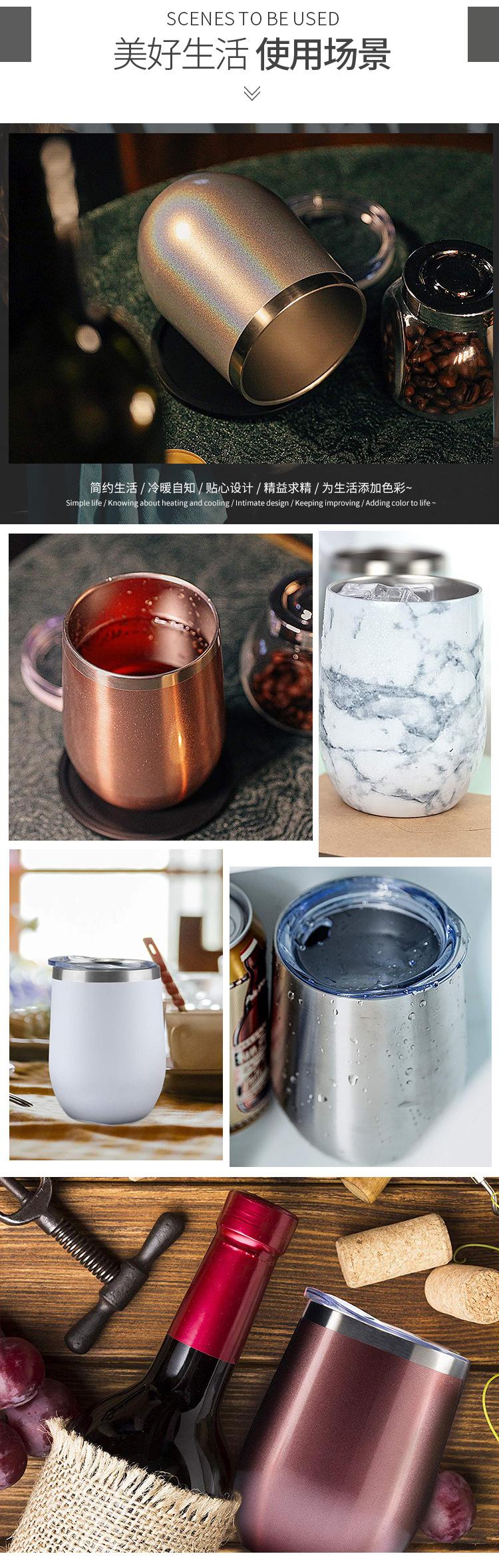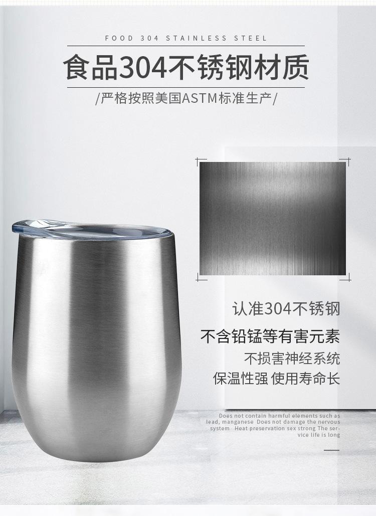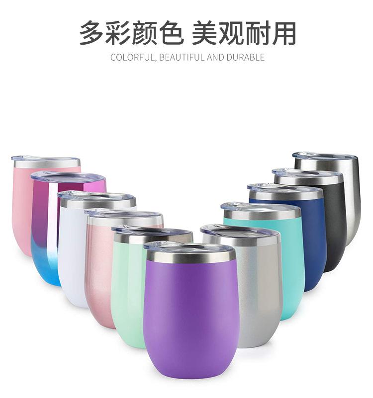 Taza de huevo de 12 oz transfronteriza, copa de vino tinto creativa, taza de cáscara de huevo en forma de U con pulverizador al vacío de acero inoxidable 304, venta al por mayor
