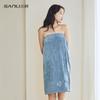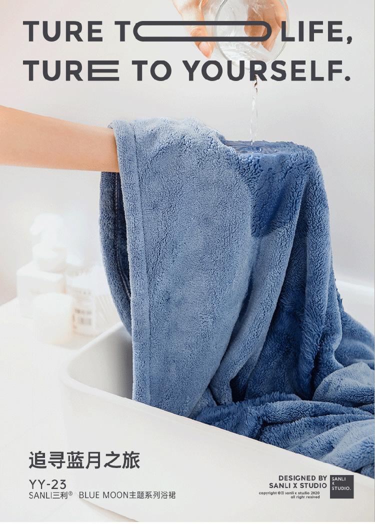 Toalla Sanli de forro polar coral para adultos, bata de baño bordada, bata de baño para parejas, toalla de baño usable, gorro absorbente para secar el cabello