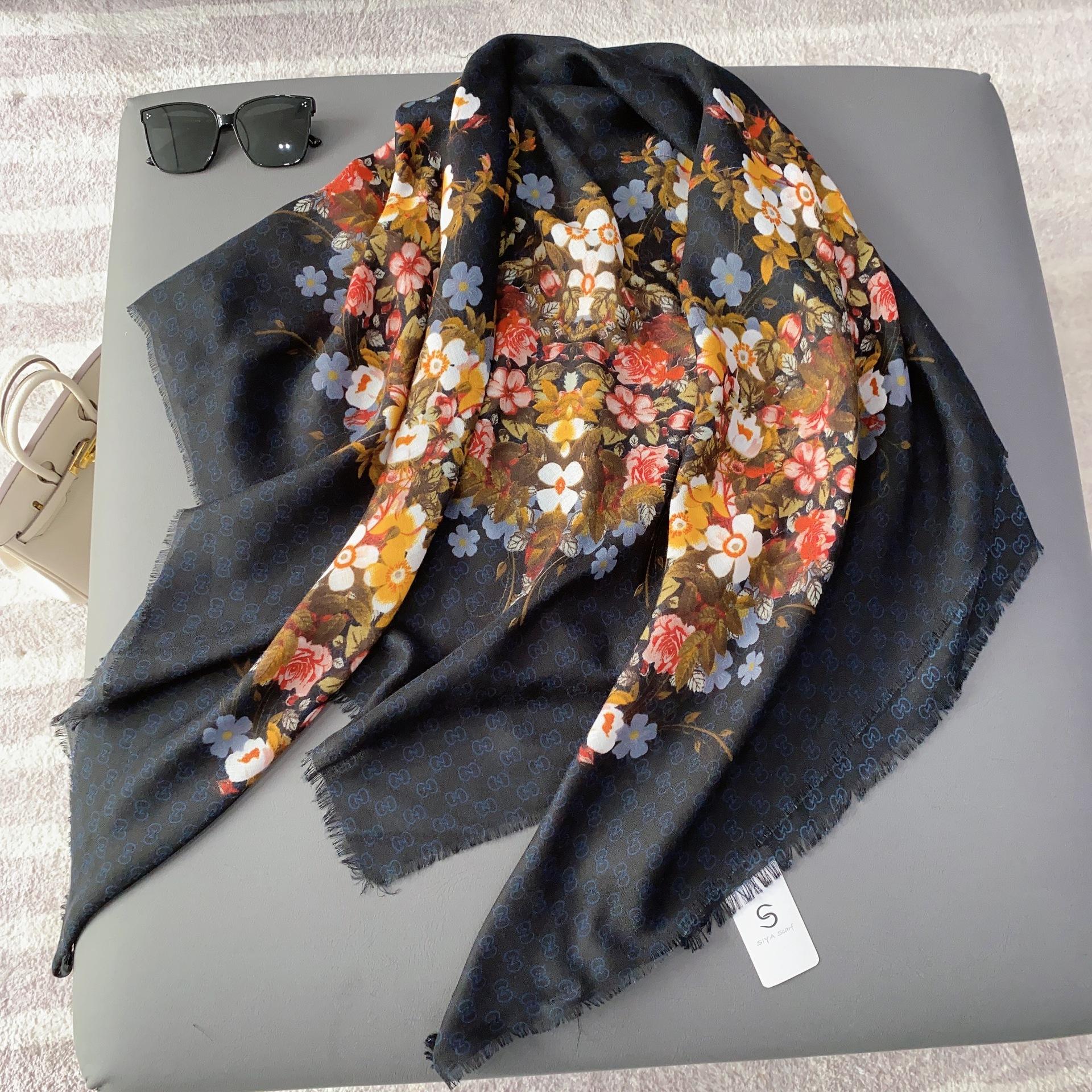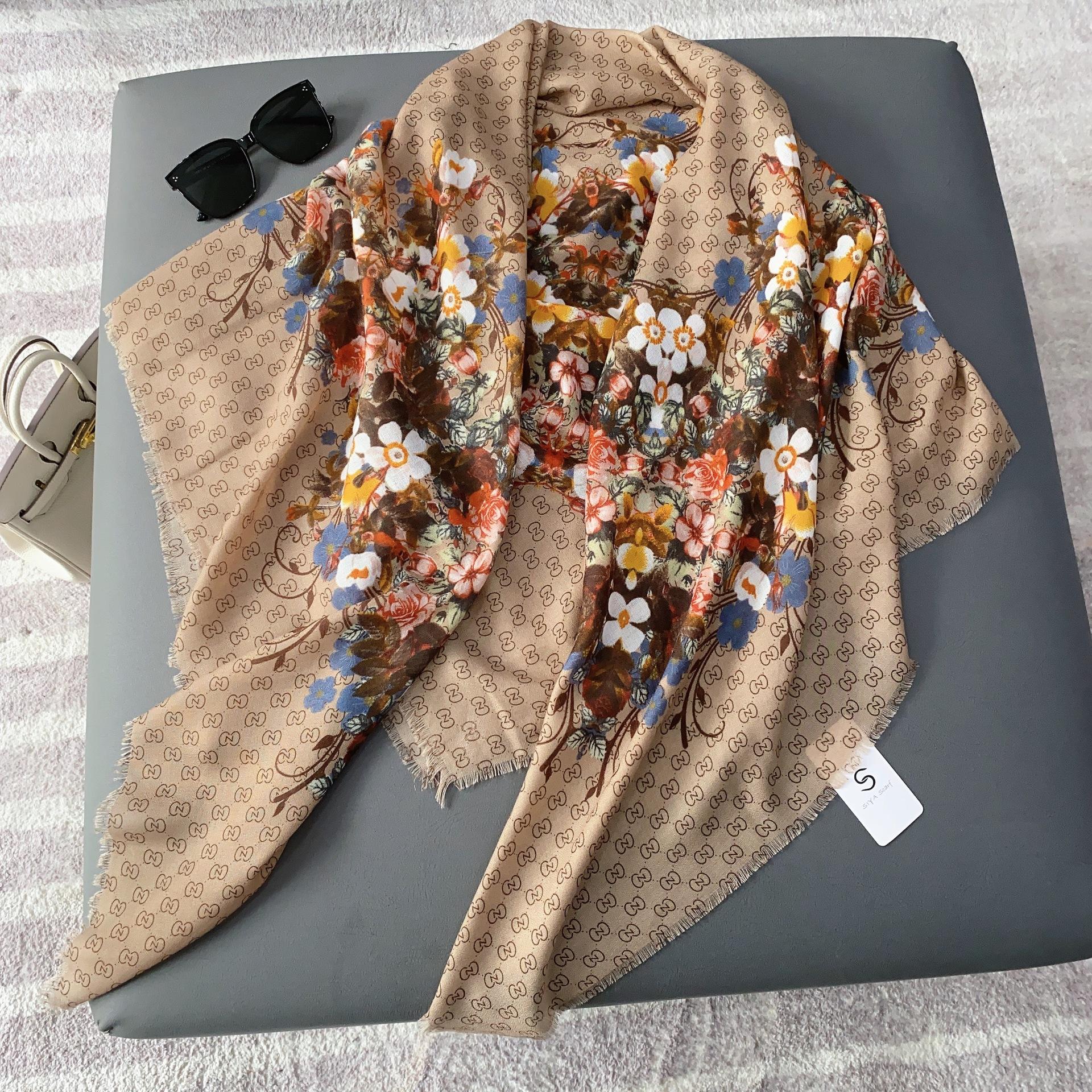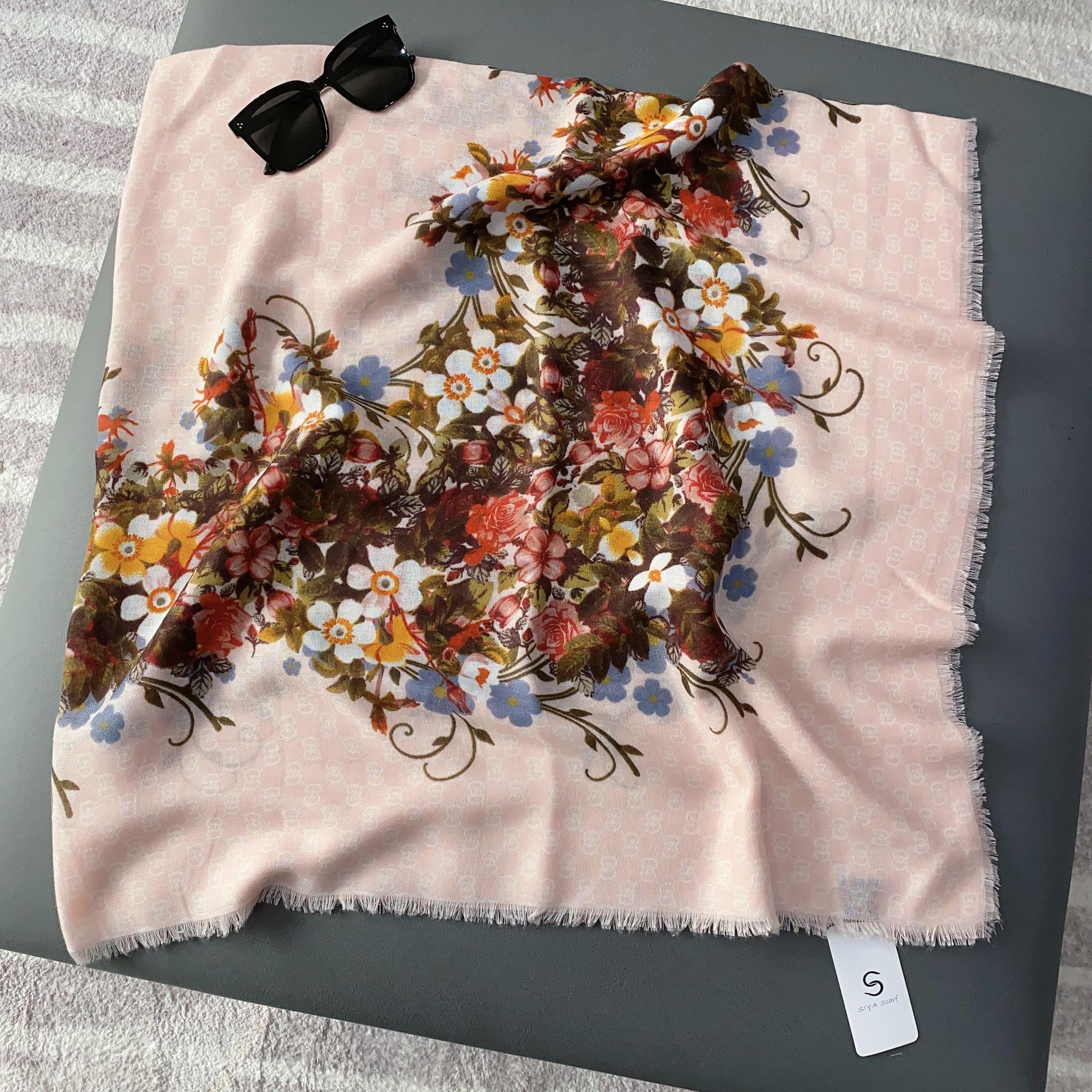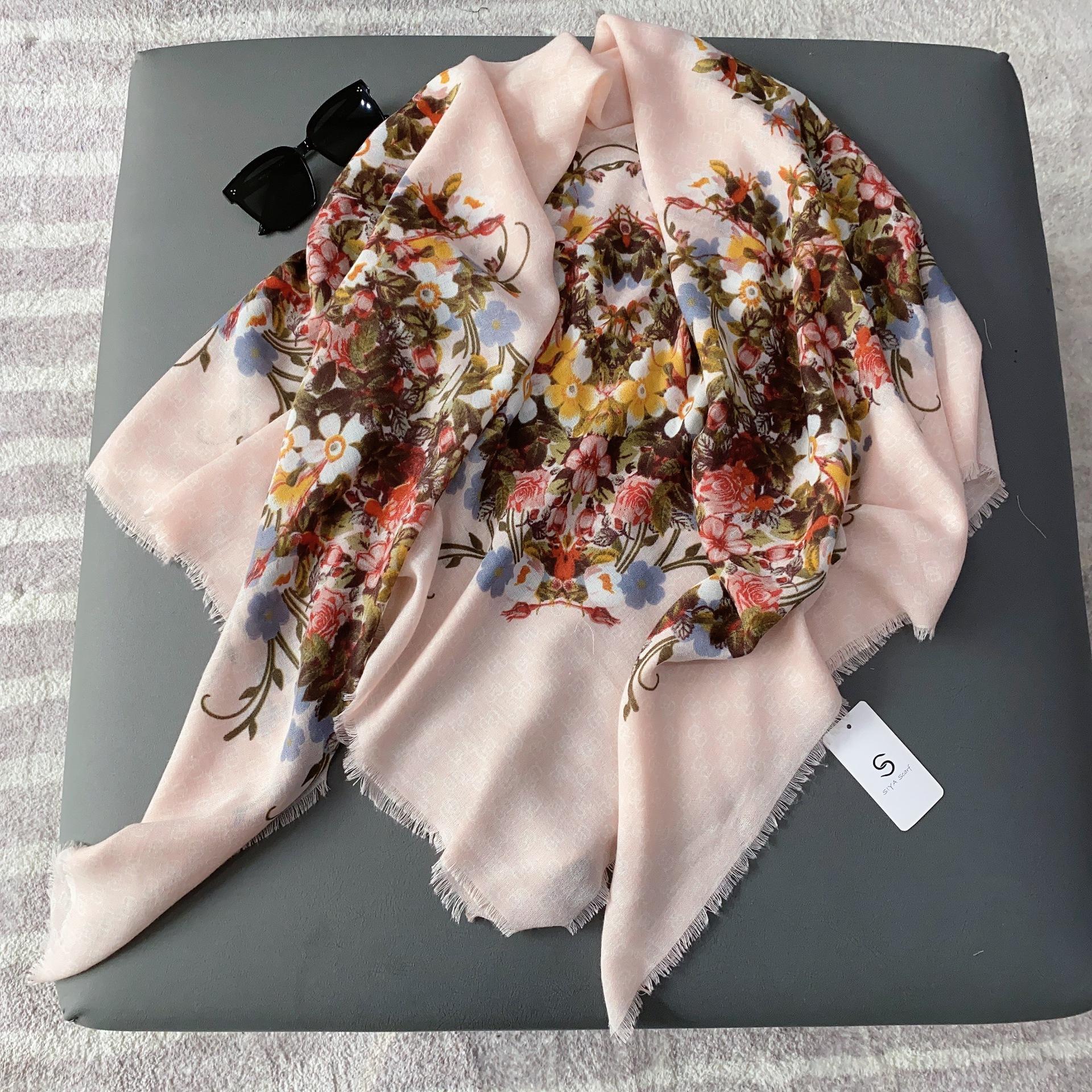 Bufanda cuadrada grande de estilo coreano para primavera y verano, fina, para playa, regalo del Día de la Madre, elegante chal de flores.