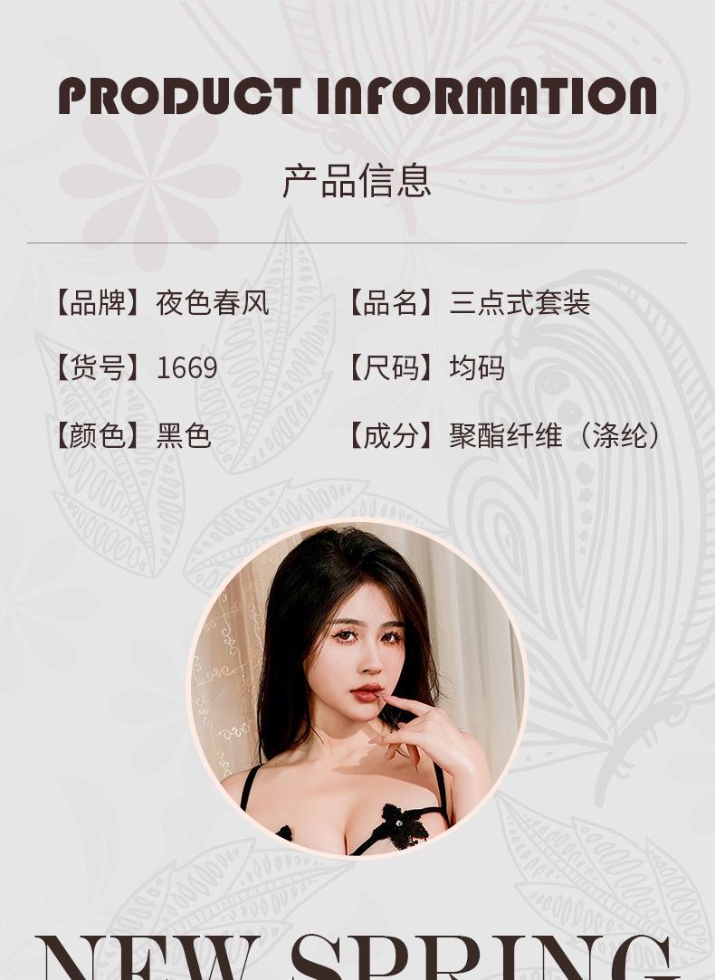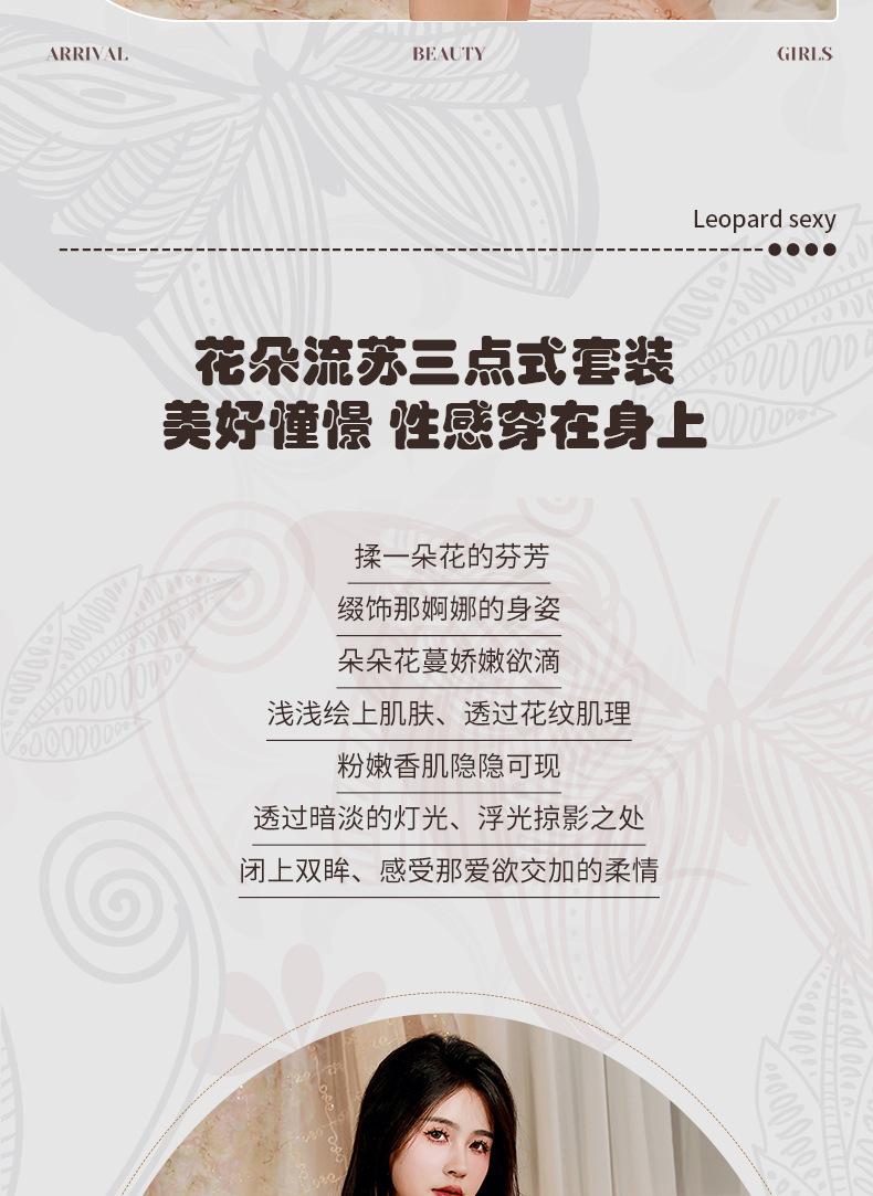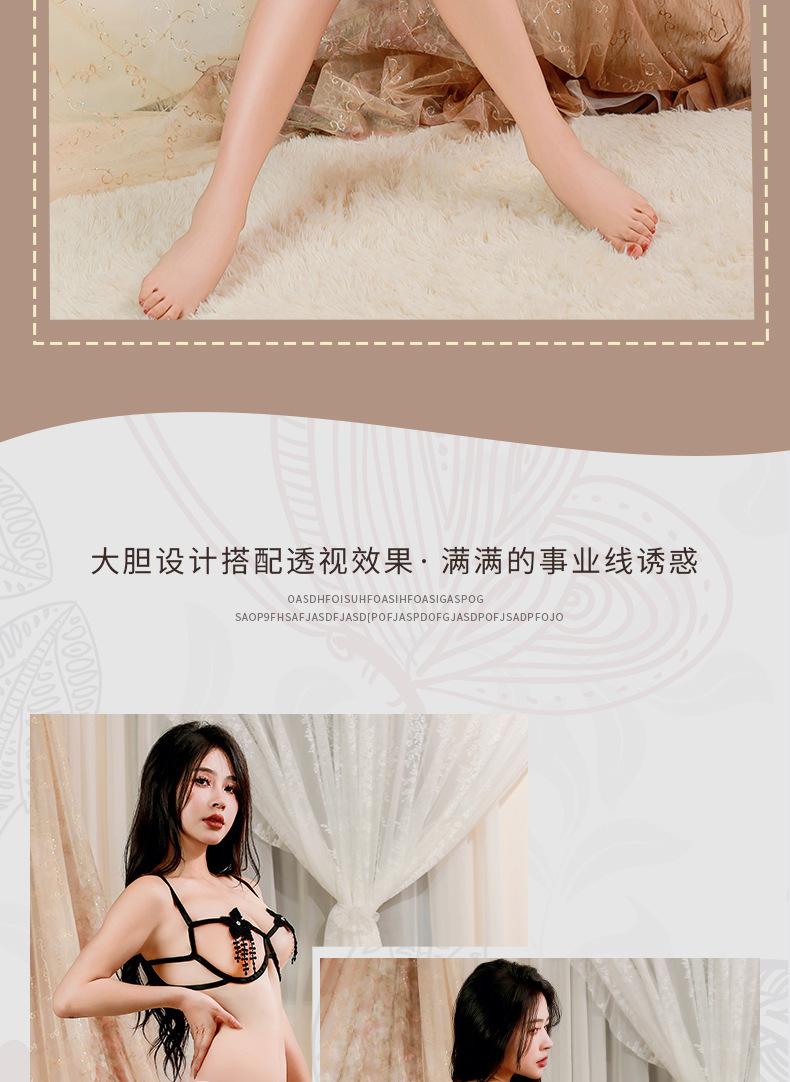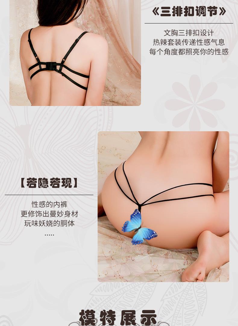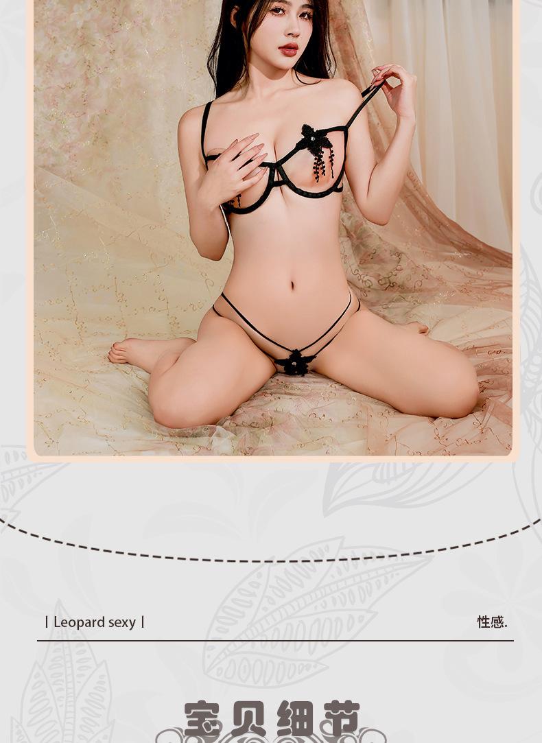 Lencería Sexy Sexy Sujetador Push-Up de Acero de Tres Puntos Panties Abiertos Dividido de Tres Puntos de Dos Piezas Flor Soluble en Agua 1669
