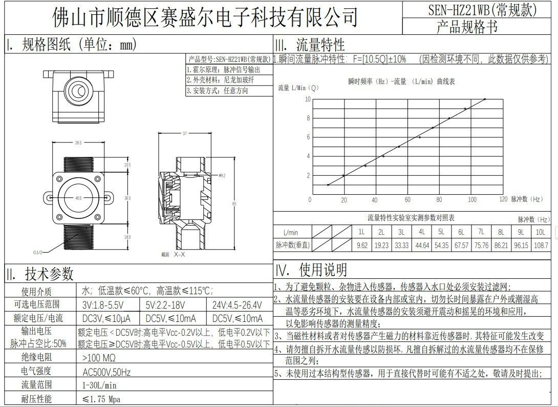 SEN-HZ21WA, material de nailon y fibra de vidrio, utilizado en calderas murales de gas, calentadores eléctricos de agua, calefacción por suelo radiante, sistemas de agua circulante, máquinas de control de agua, máquinas expendedoras de agua, instrumentos, equipos mecánicos, etc.