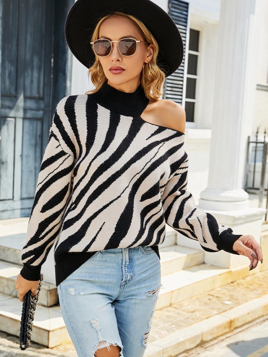 Suéter de tigre de manga larga con cuello semialto, sexy, para mujer, de comercio exterior transfronterizo de Amazon