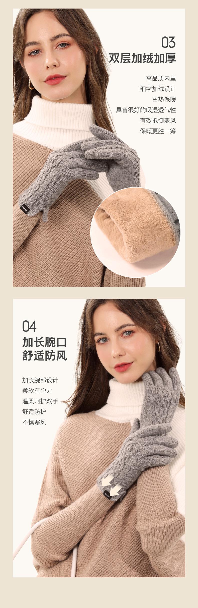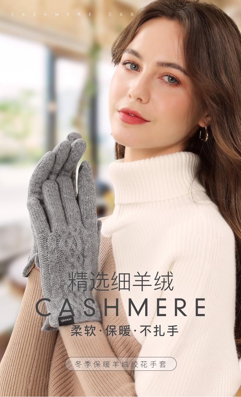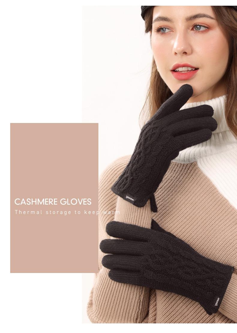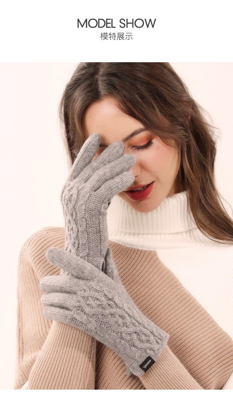 Guantes cálidos de cachemira para mujer, resistentes al frío, de lana tejida, con forro polar y pantalla táctil gruesa, DY27