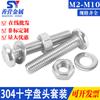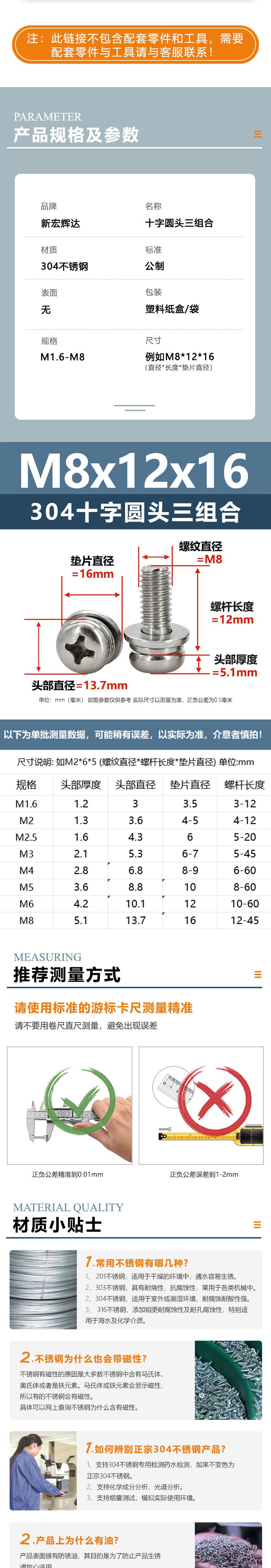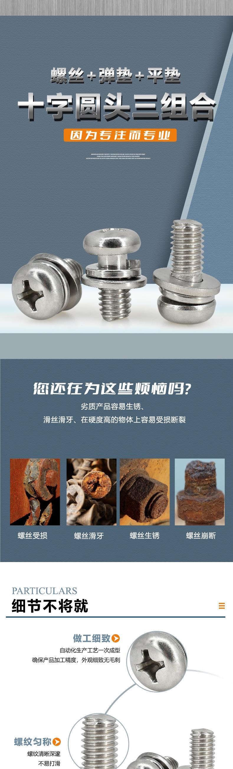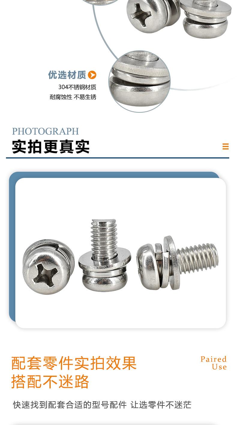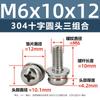 Tornillo de cabeza redonda Phillips de acero inoxidable 304, tornillo de máquina de cabeza plana M3M6, tornillo Phillips, almohadilla de resorte plana, tornillo de combinación de tres