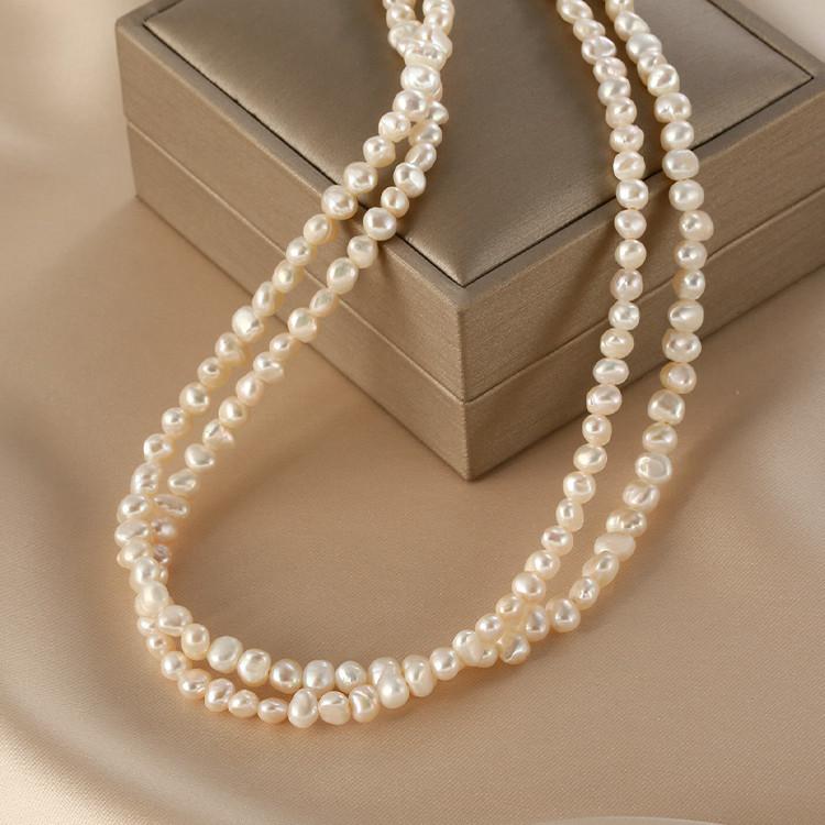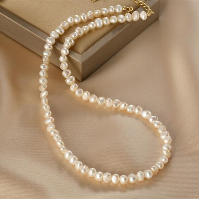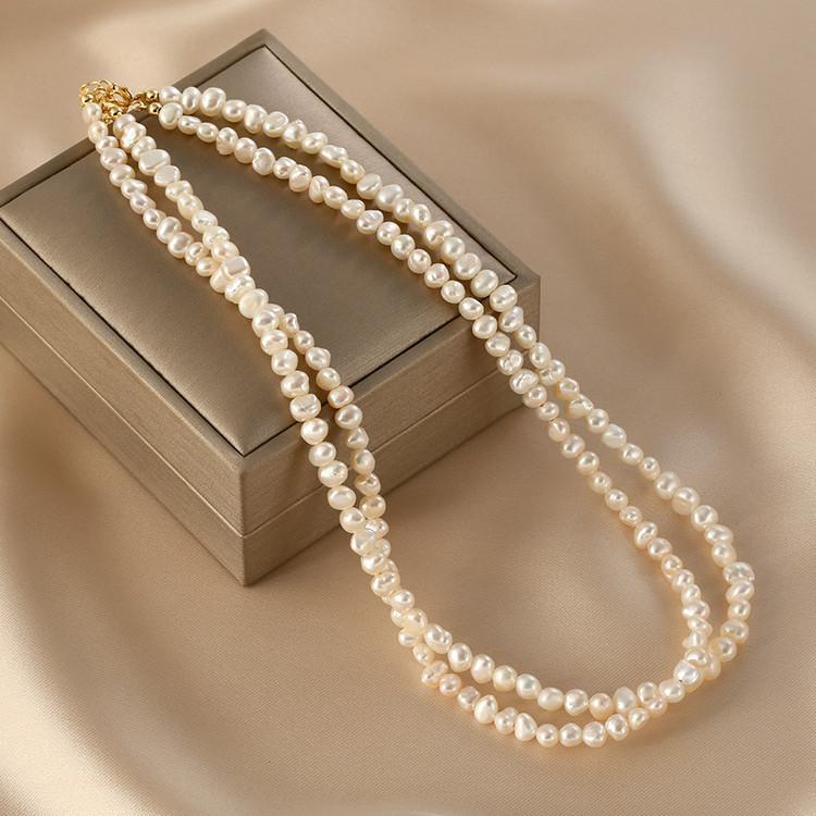 Collar de perlas naturales de agua dulce para mujer, cadena de clavícula de perlas barrocas personalizadas, cadena de suéter de alta calidad con nicho