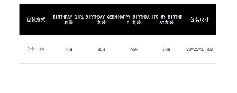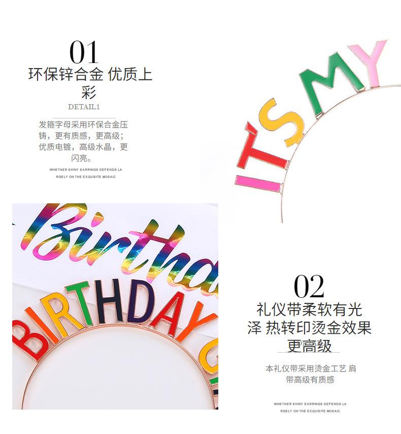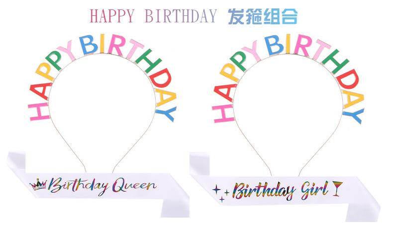 Conjunto de suministros para fiesta de feliz cumpleaños FELIZ CUMPLEAÑOS Diadema de cumpleaños Correa para el hombro Broche de bandera Cuatro piezas |