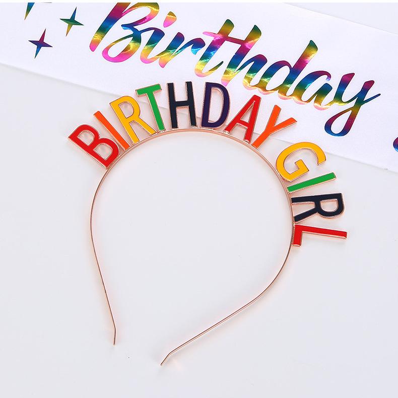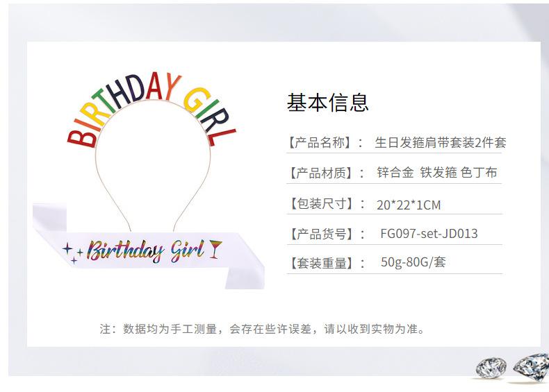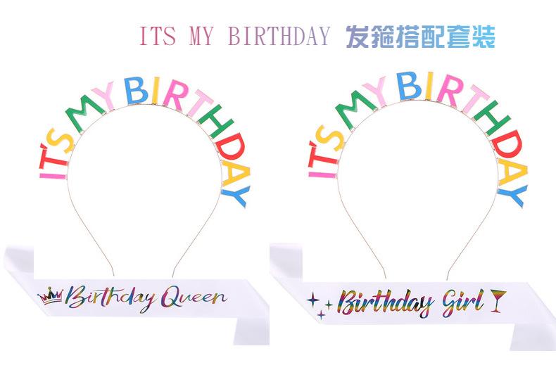Diadema de cumpleaños de moda europea y americana, correa para el hombro para niña de cumpleaños, tocado para niña de cumpleaños, accesorios para el cabello, conjunto de cinturón |