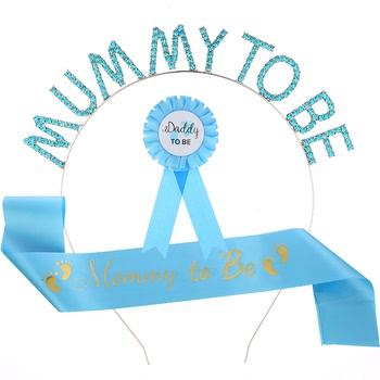 suministros para fiesta de baby shower diadema para futura mamá correas para el hombro insignia para futuro papá |