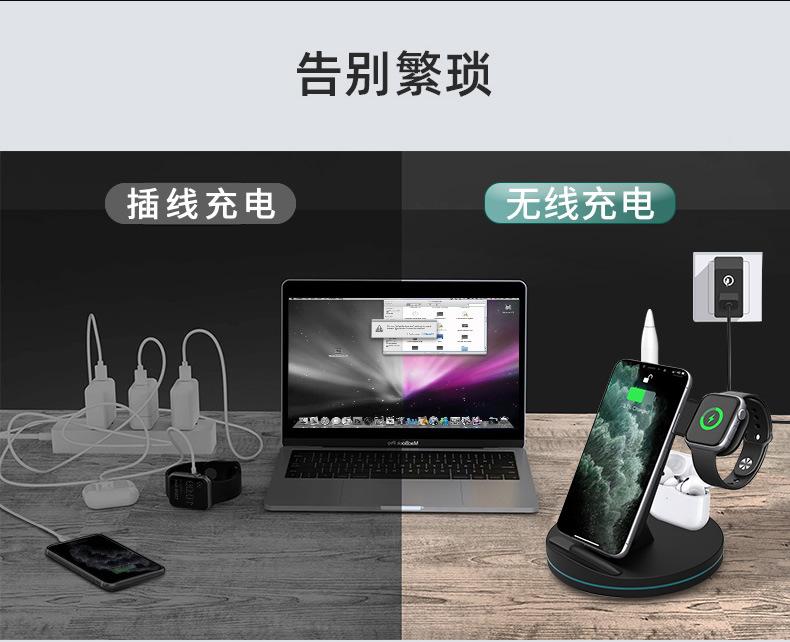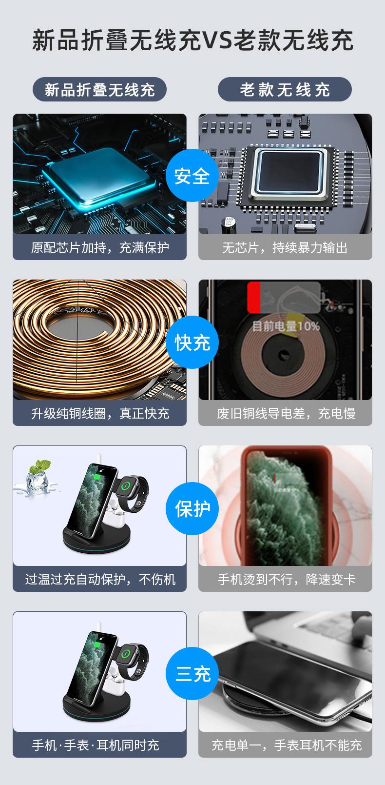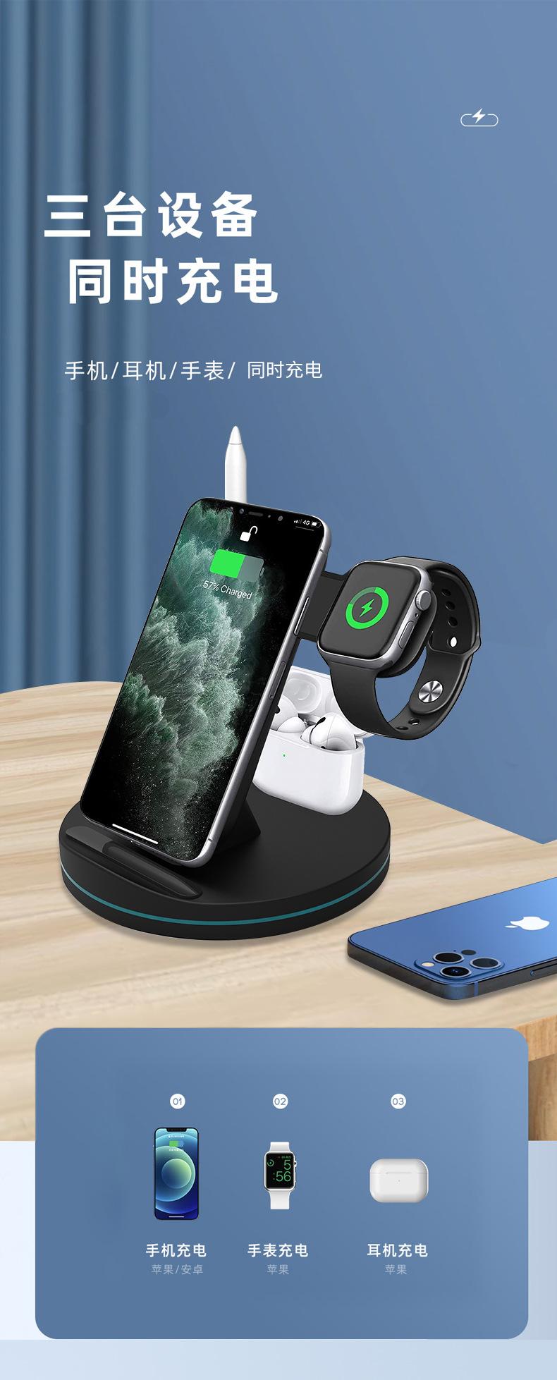 Cargador inalámbrico transfronterizo tres en uno para auriculares de reloj móvil Apple iPhone 14, cargador inalámbrico vertical