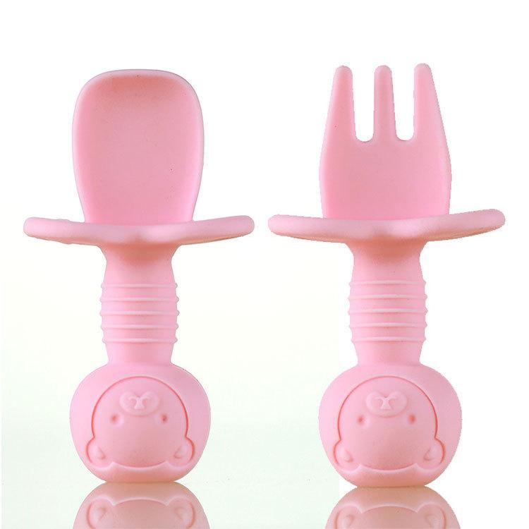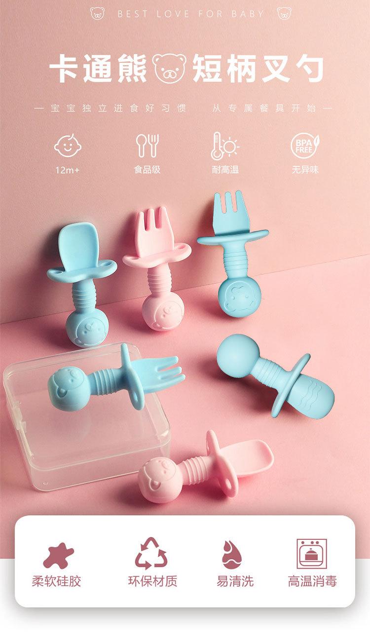 Tenedor y Cuchara de Silicona de Mango Corto para Bebé Xinpeng Sheng Tenedor y Cuchara para Entrenamiento de Alimentación de Bebé Cuchara para Alimentación Complementaria