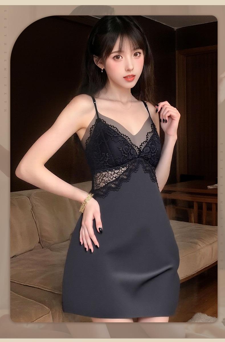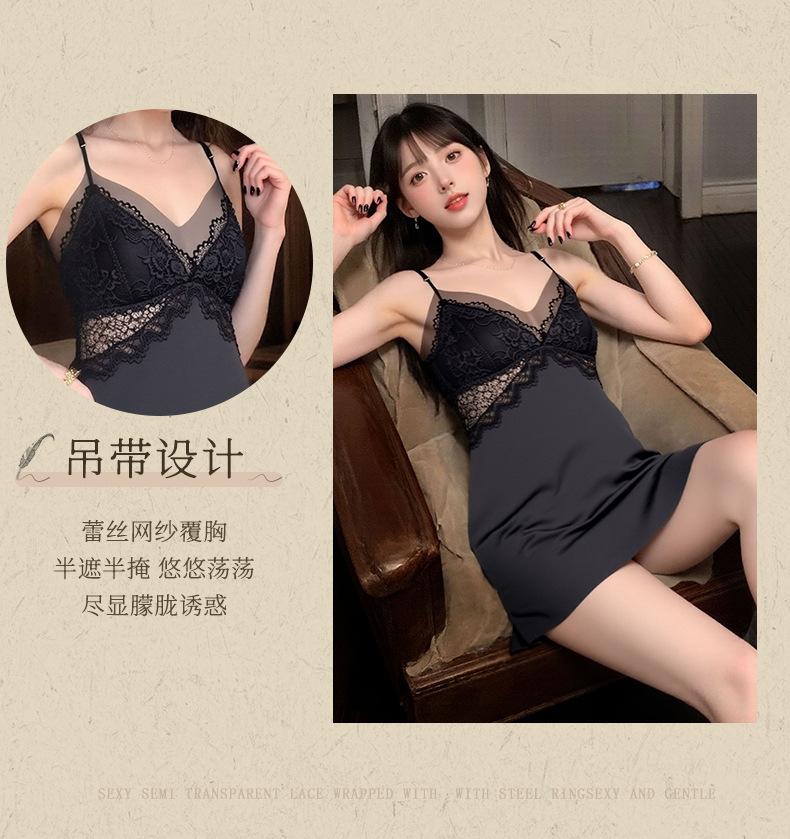 Pijama Sexy Verano Nuevo Sexy Sling Vestido Midi Seda de Hielo Ropa Interior Sexy Tentación Set Sexy Ropa de Casa
