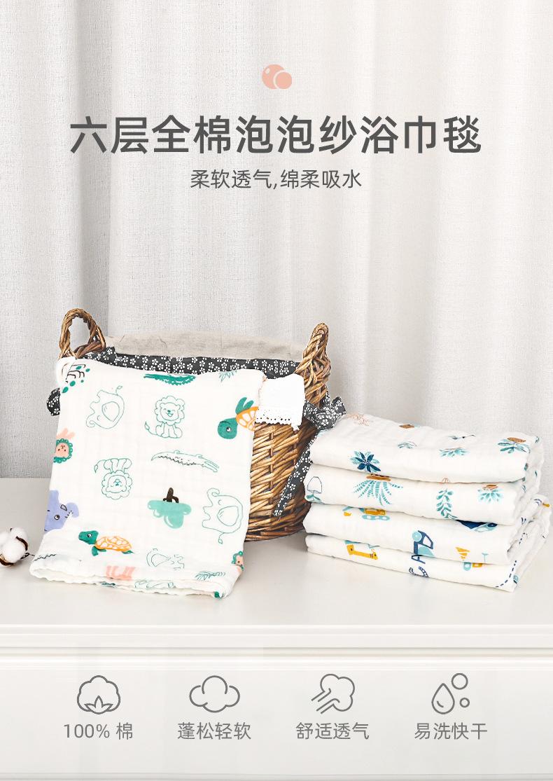Toalla de baño de gasa para bebé, toalla de hilo de algodón de seis capas, algodón recubierto para recién nacidos, productos para bebés recién nacidos, toalla de baño, edredón