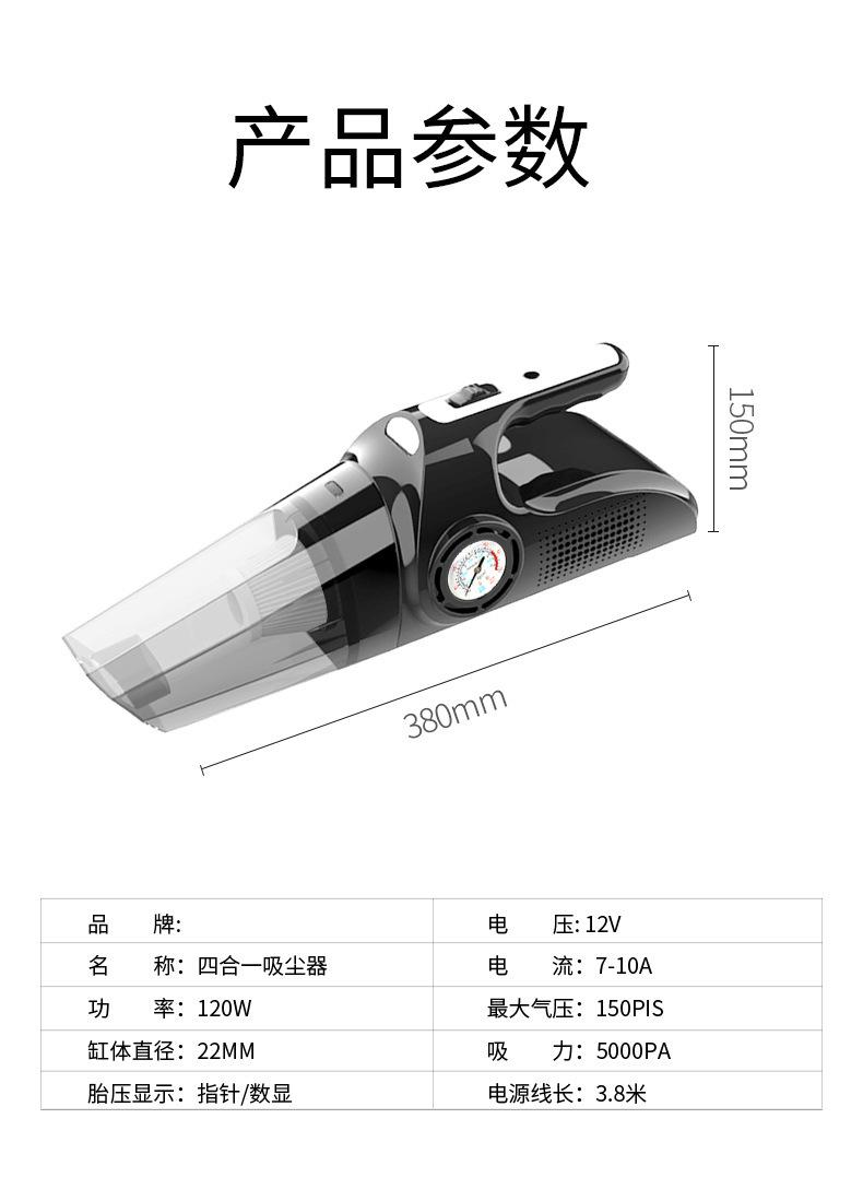 Aspiradora de coche 4 en 1 bomba de aire para coche carga inalámbrica para uso en el coche y en el hogar, potente y especial alta potencia