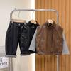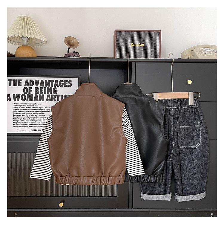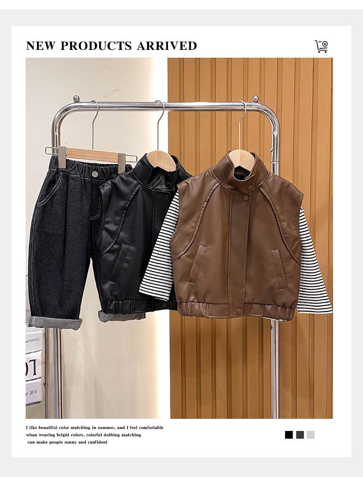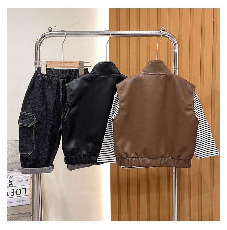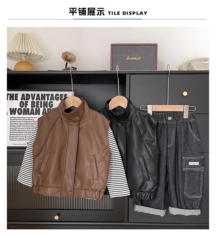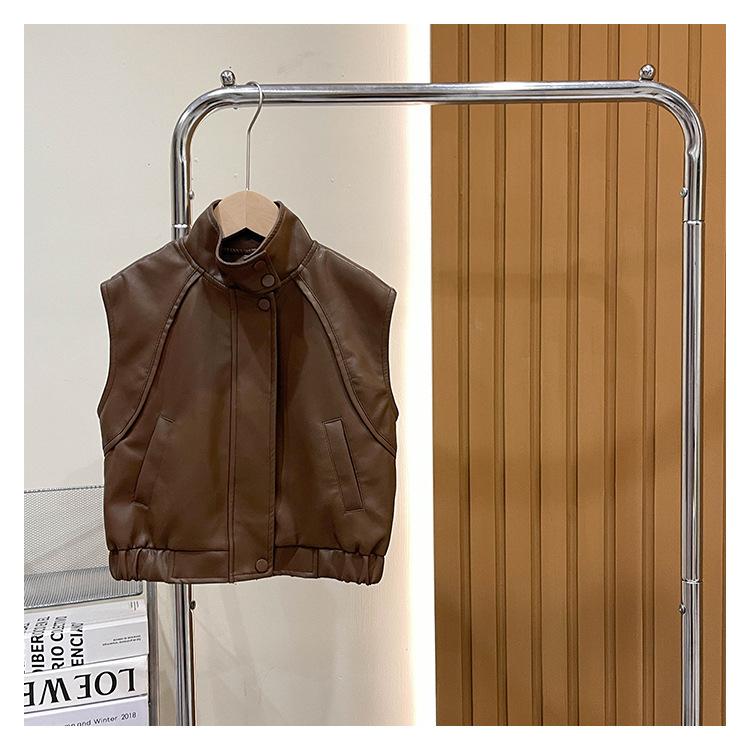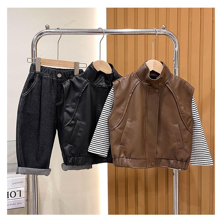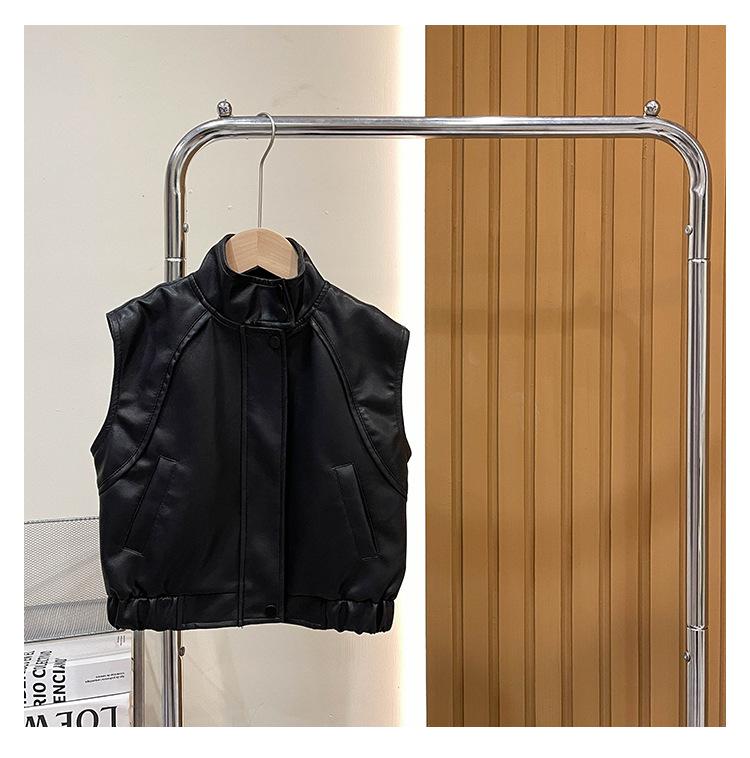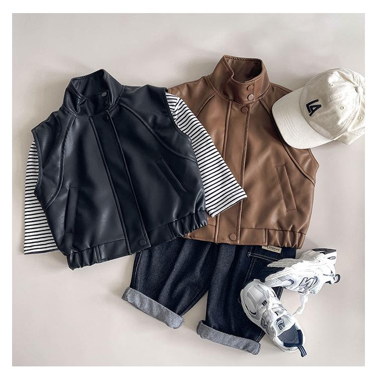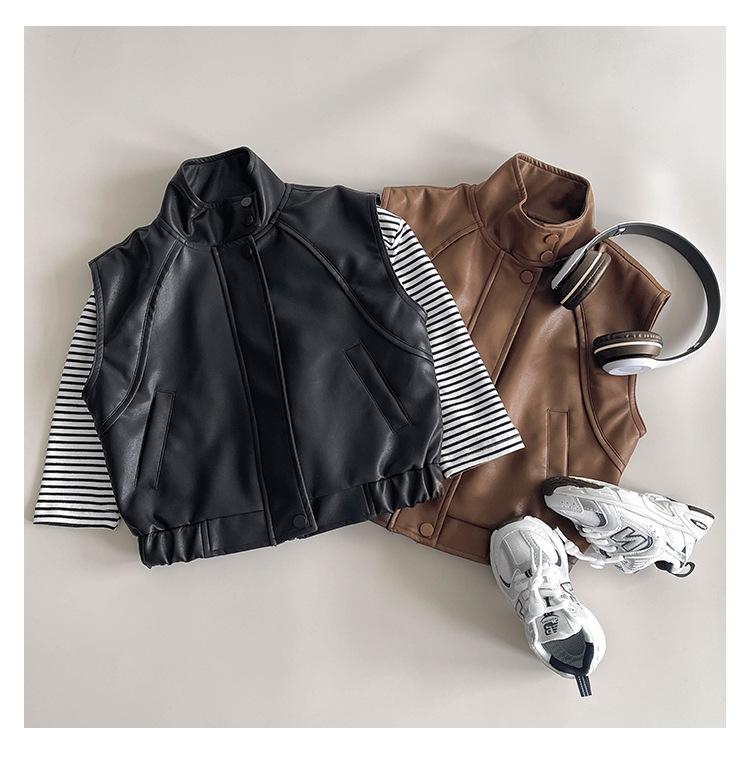 Xianao 2023 otoño nueva ropa para niños chaleco de cuero para niños chaqueta de cuero de PU coreana con cuello alto para niños de moda