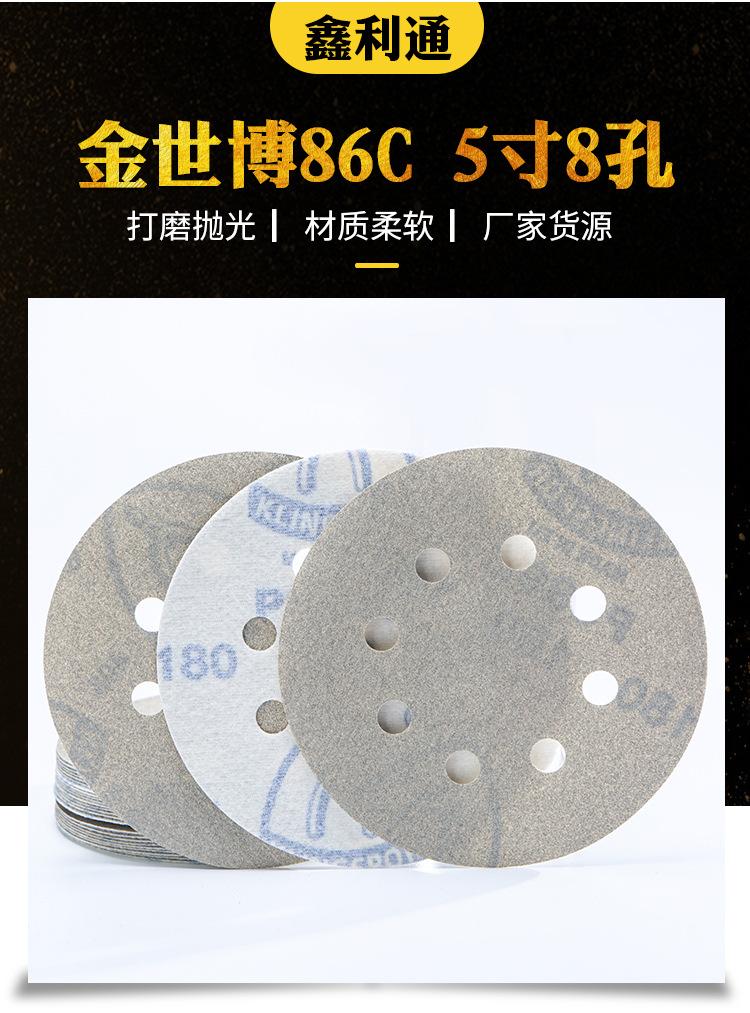 Lija de 5 pulgadas y 8 agujeros con respaldo de terciopelo Jinshibao personalizada Disco de pulido para imprimación de muebles Pulido Pulido en seco Fabricante de lija flocado