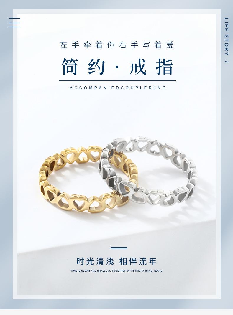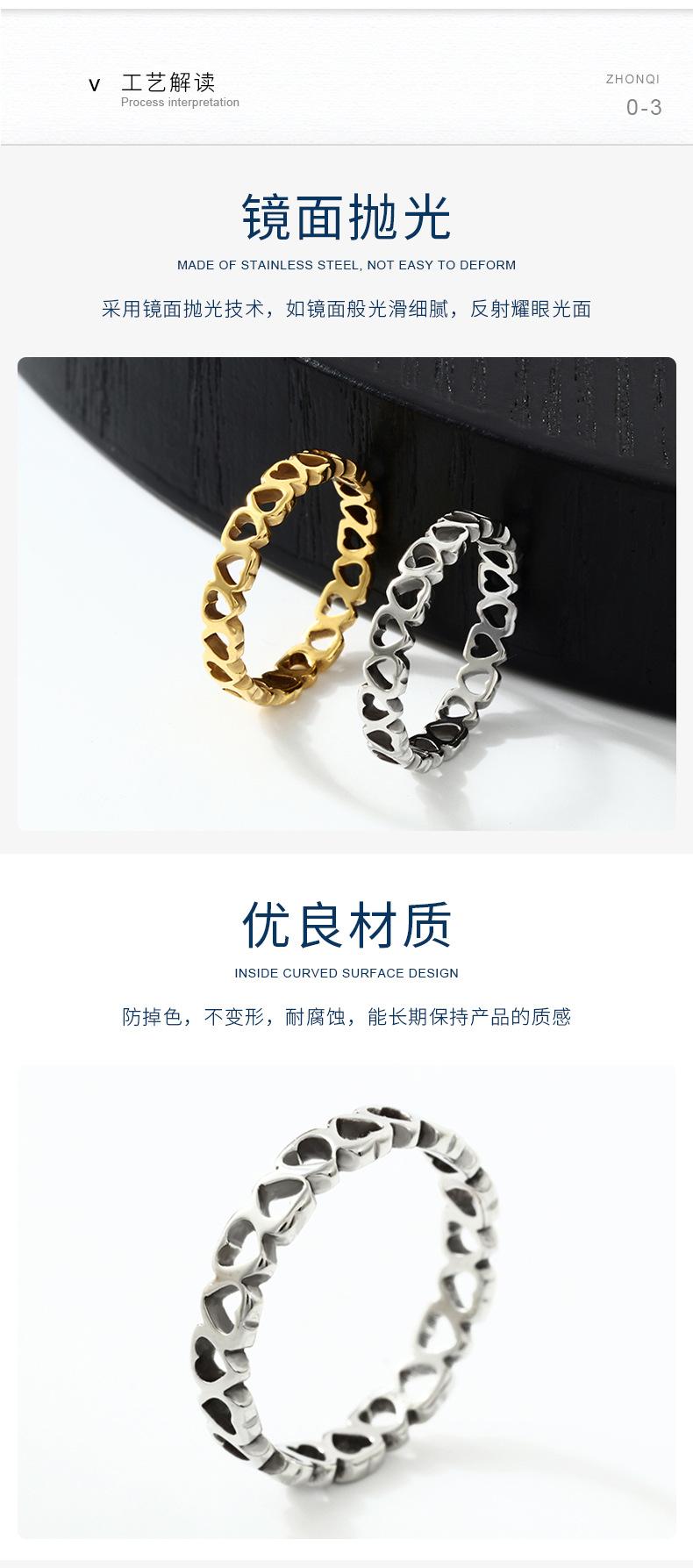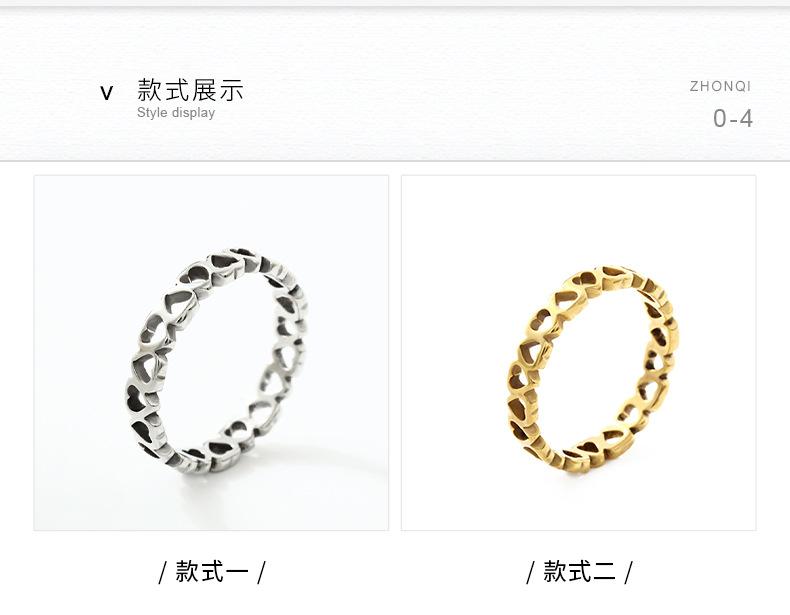Anillo de Acero Inoxidable al por Mayor de Suministro Transfronterizo Moda Creativo Diseño Hueco Corazón Amor Anillo de Acero de Titanio Joyería para Mujer