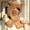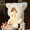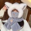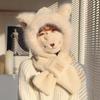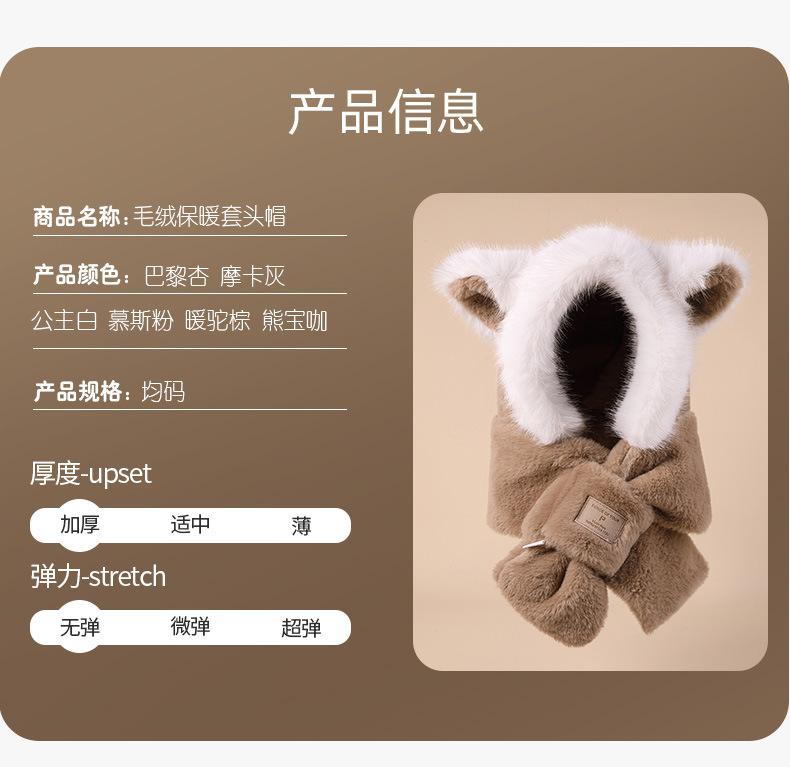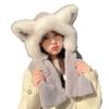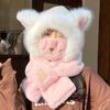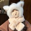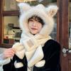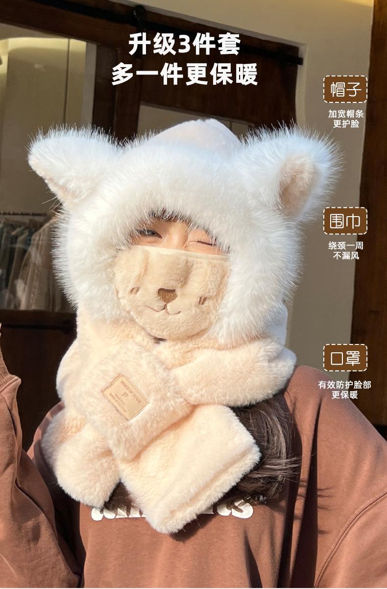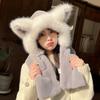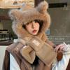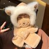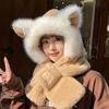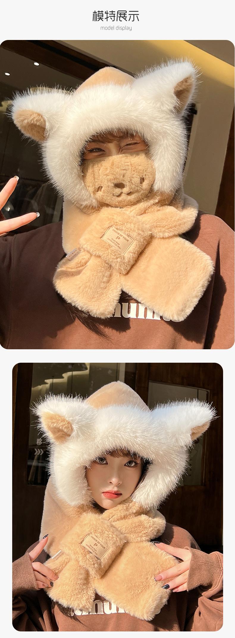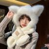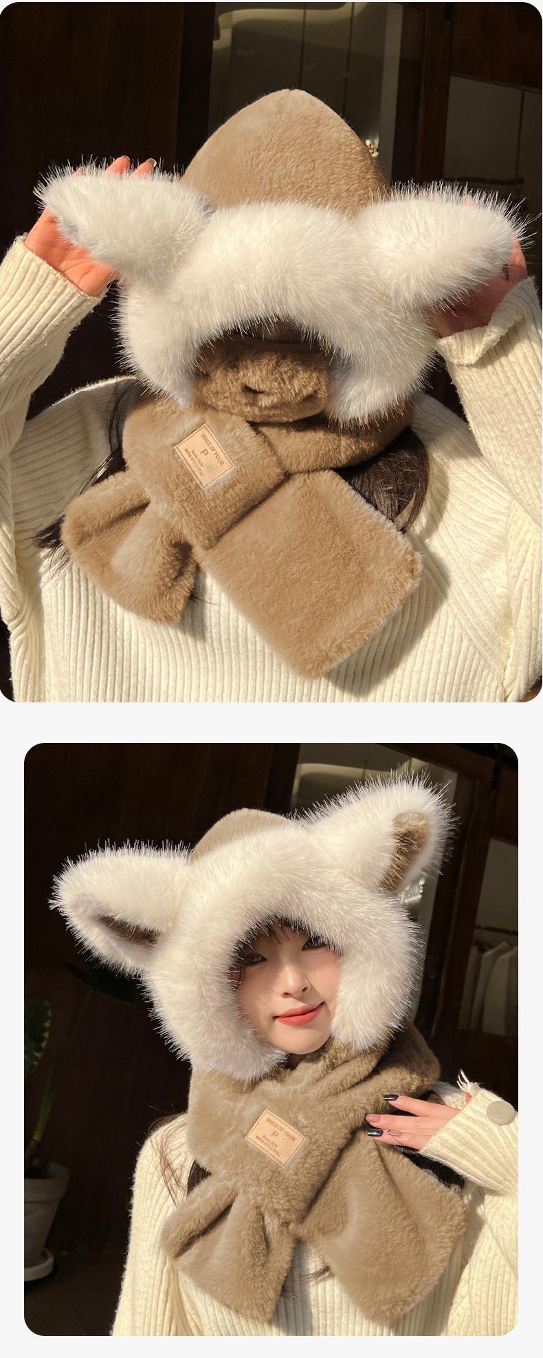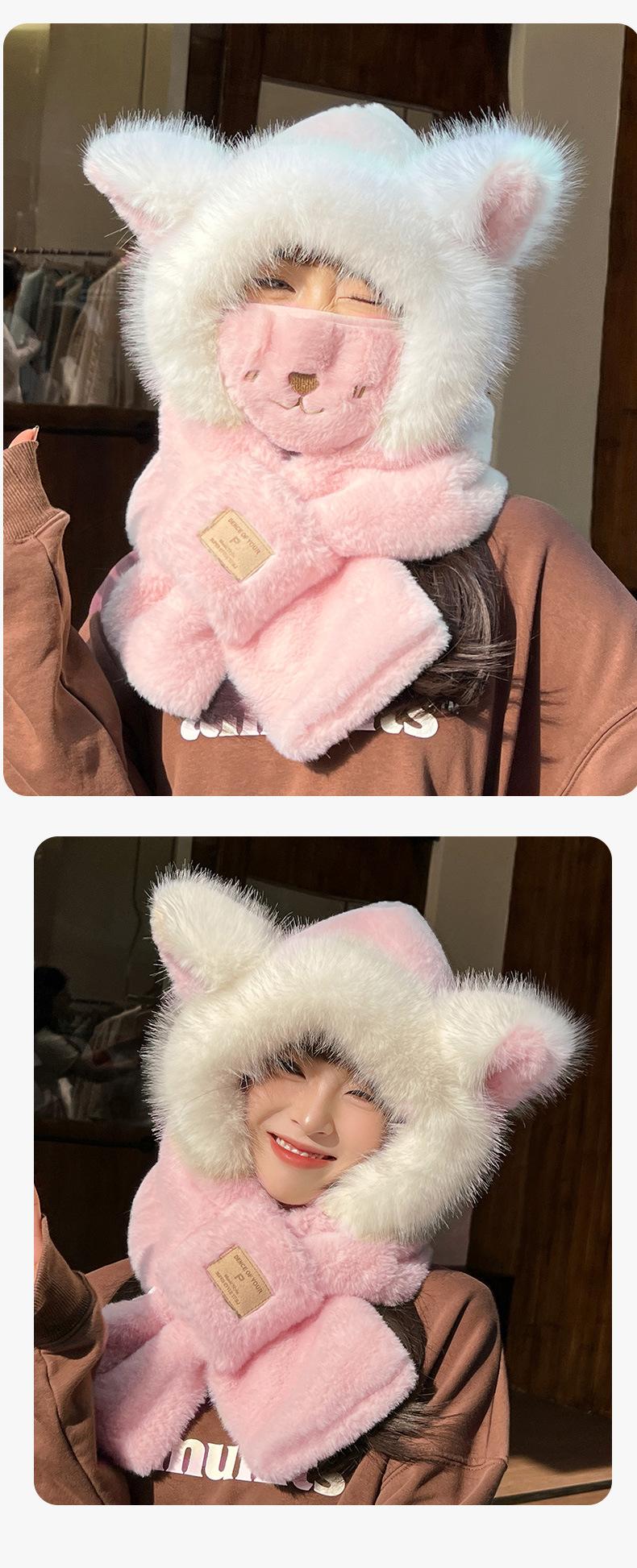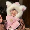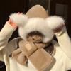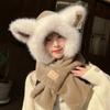 Gorro de felpa cálido para mujer, bonito gorro de invierno con orejeras gruesas de zorro, bufanda integrada para ciclismo, gorro a prueba de frío