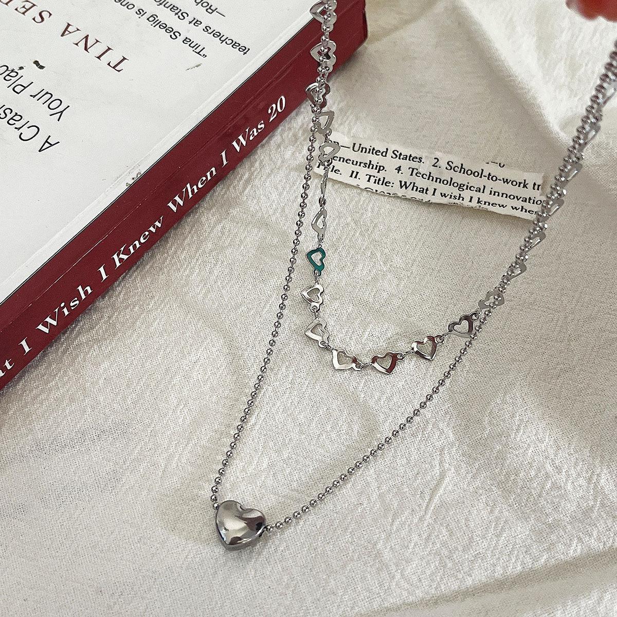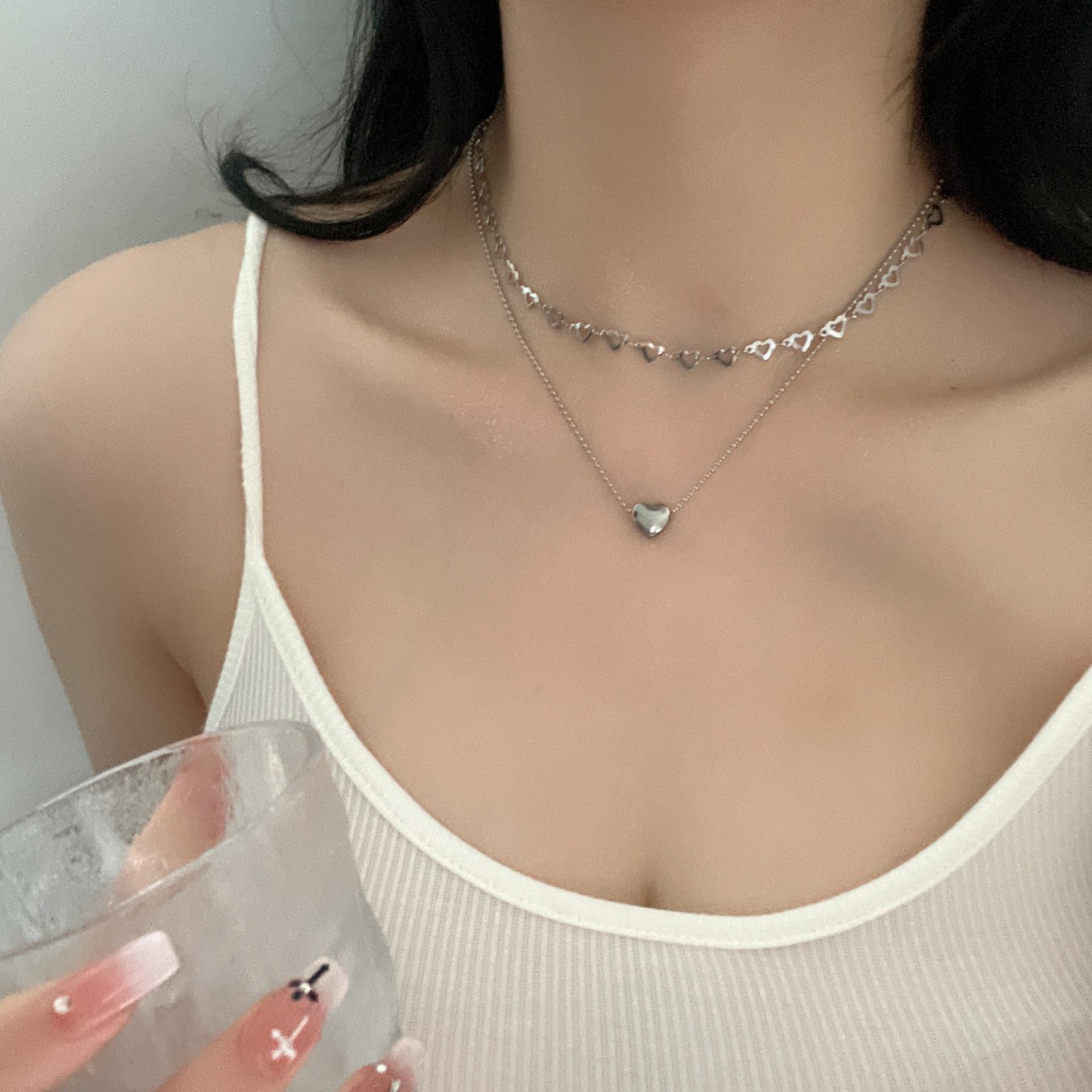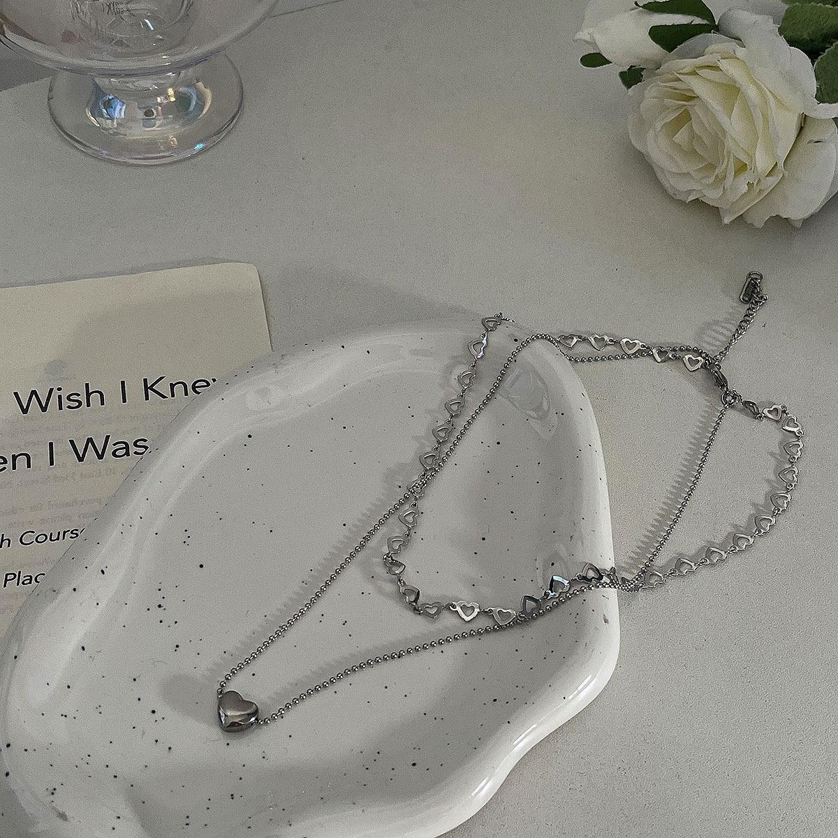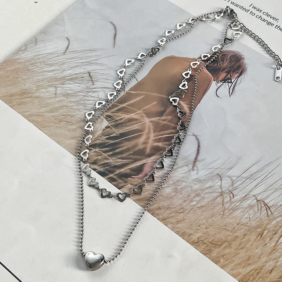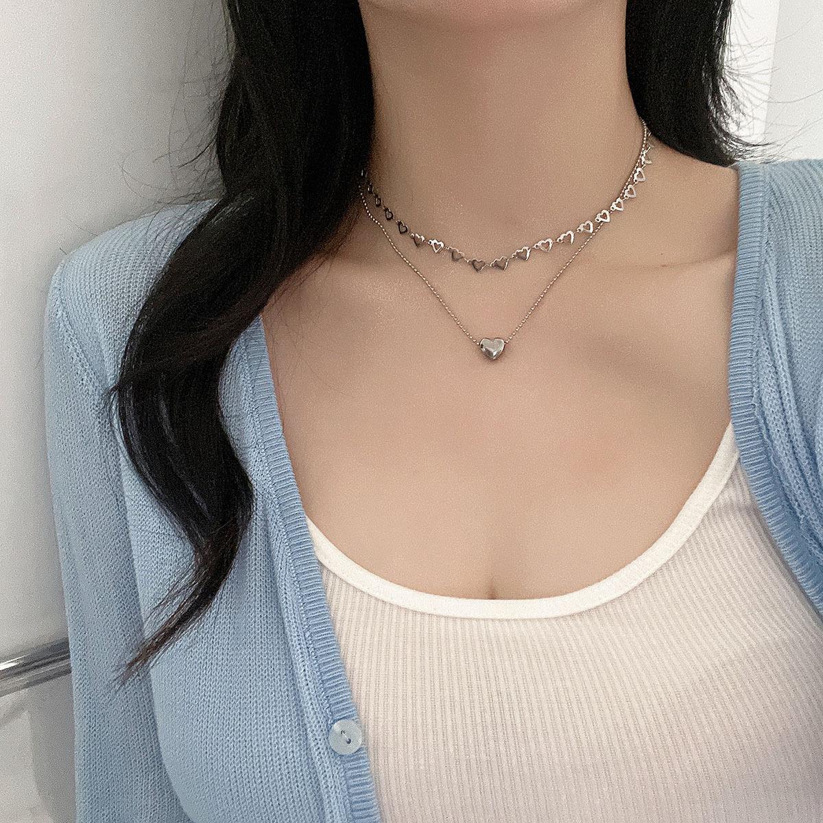 Collar de amor de acero de titanio apilado de doble capa de estilo europeo y americano, personalidad femenina, diseño de nicho moderno, cadena de clavícula simple de alta calidad