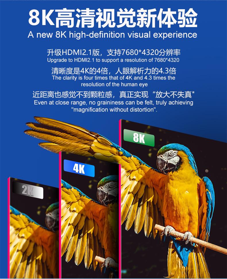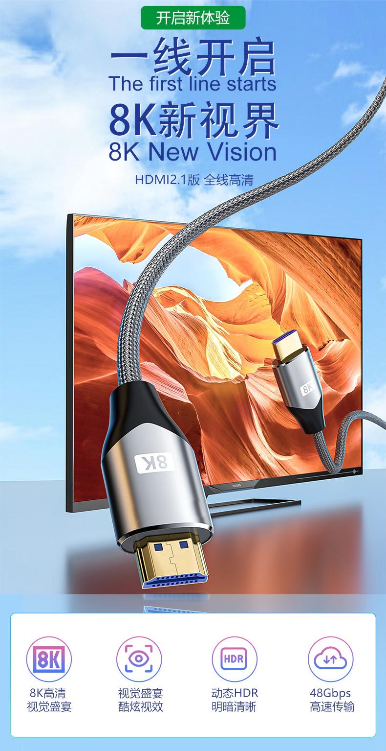 Cable de vídeo de proyección para monitor de computadora, decodificador de TV, versión HDMI 2.1, 8K60Hz, venta al por mayor