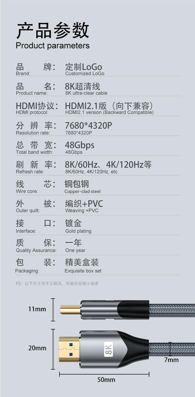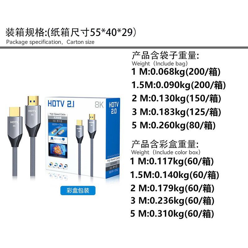 Hdmi 8k aluminum alloy gray (bag), Hdmi 8k aluminum alloy gray (color box)