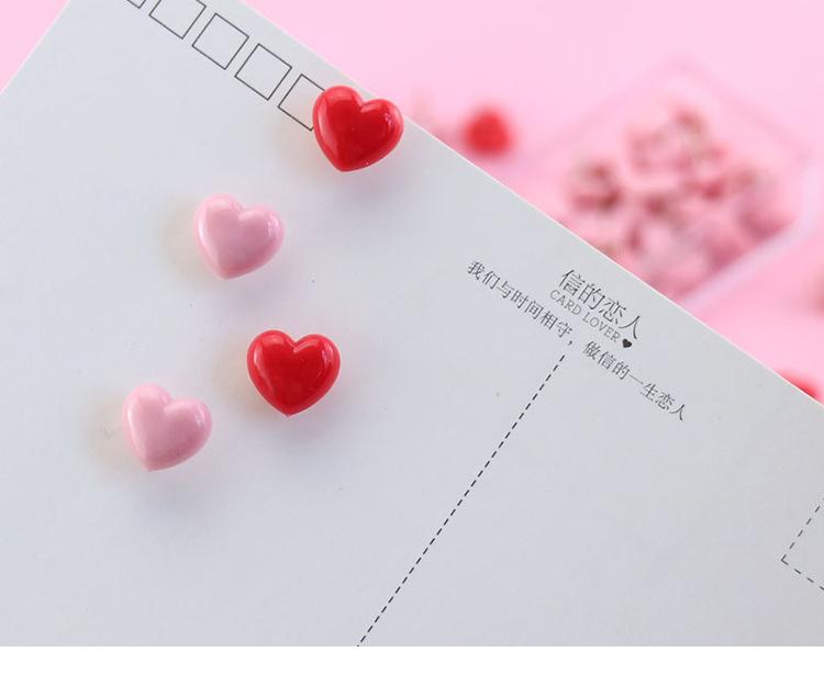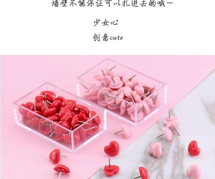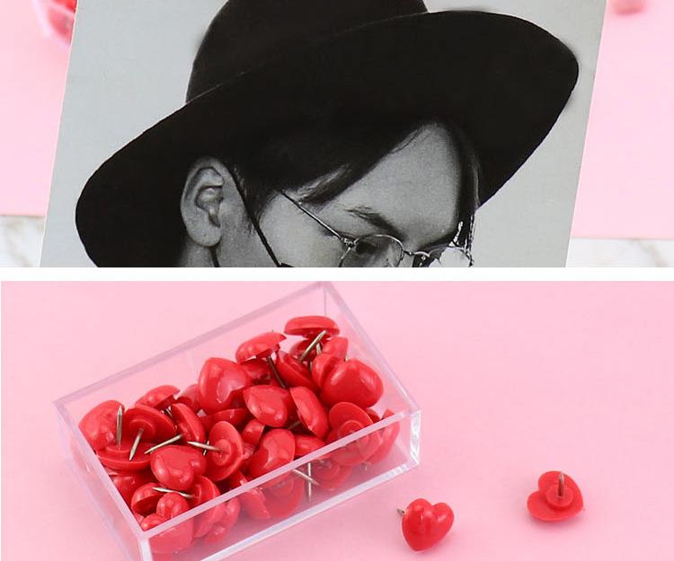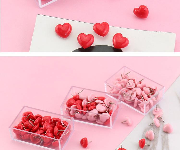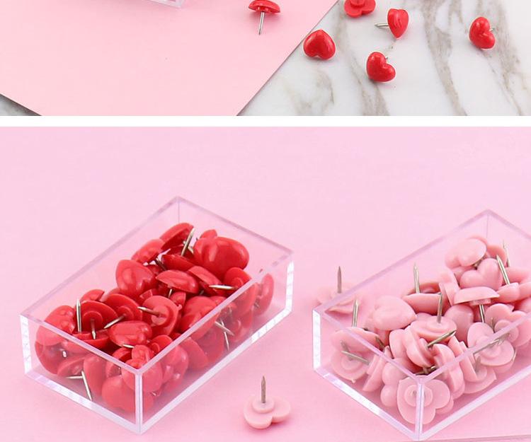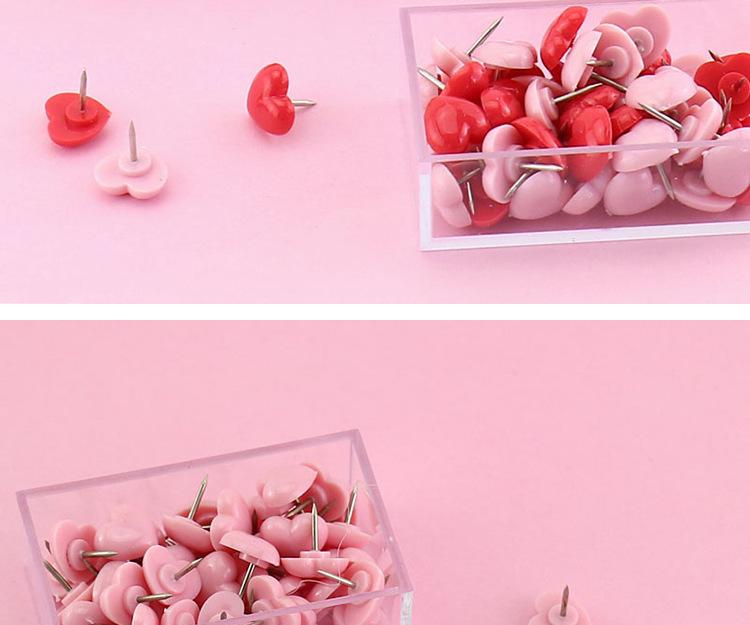 Lindas Tachuelas Rosadas en Forma de Corazón, Tachuelas de Plástico Coloridas, Caja Transparente Set de 50 Prácticas Chinchetas para Corcho