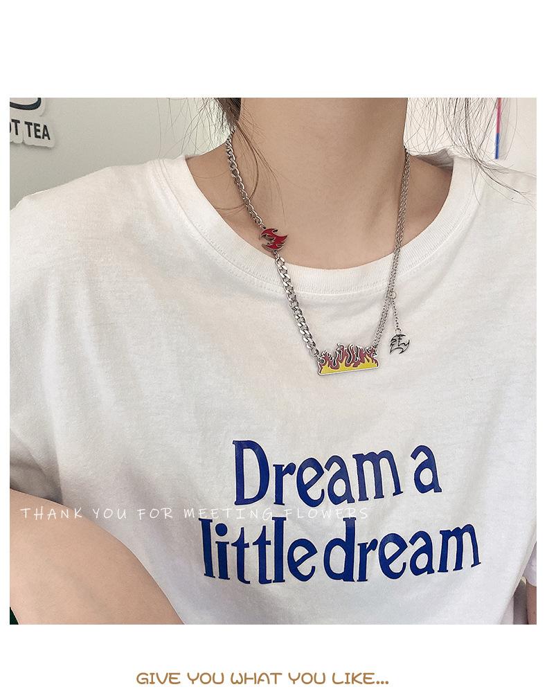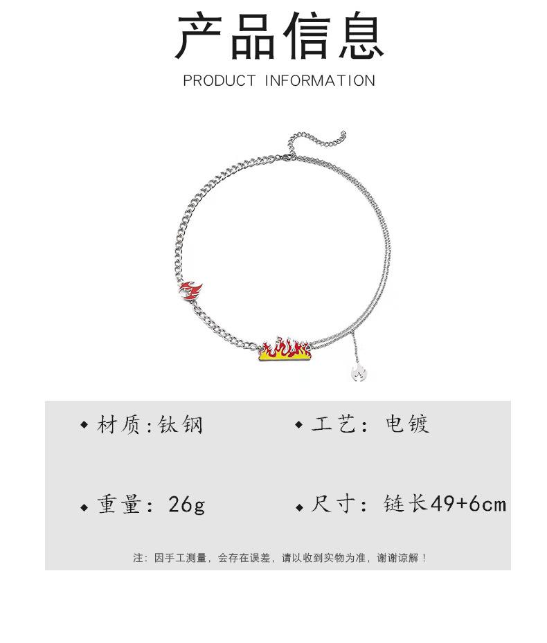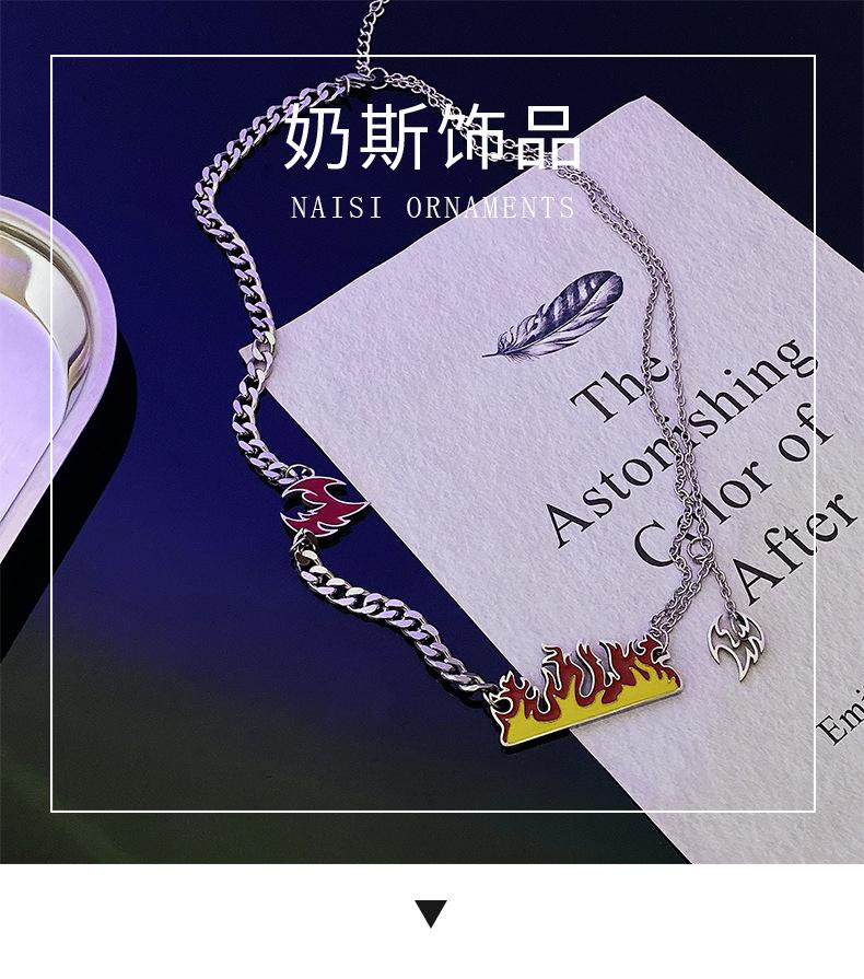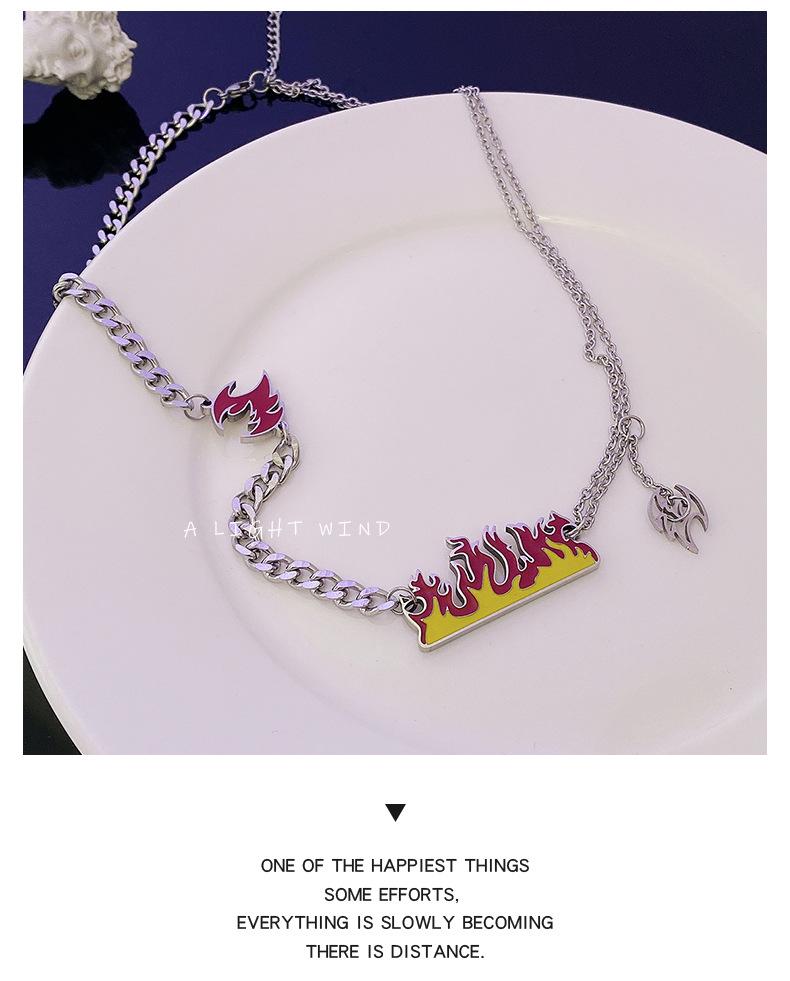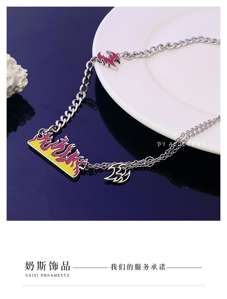 Collar de acero de titanio con llama de marca de moda que no se decolora para hombres y mujeres, colgante de fuego ardiente con personalidad, cadena de suéter de hip hop de moda