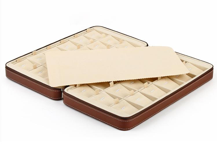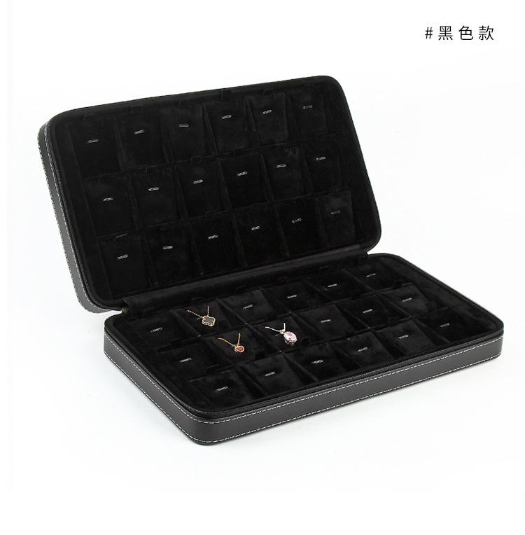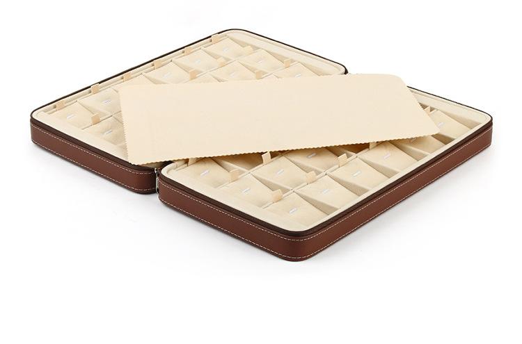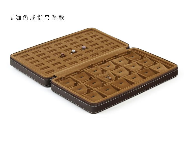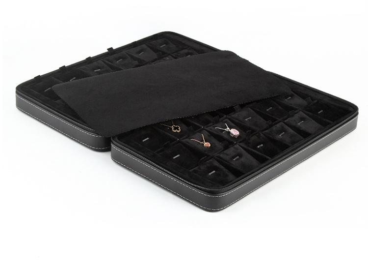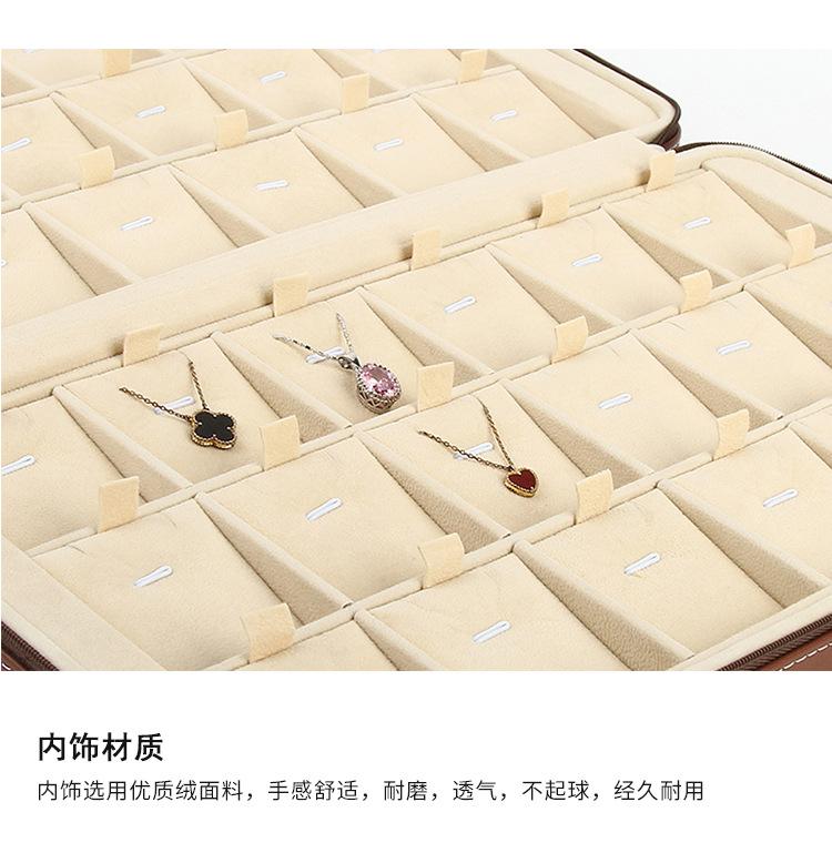 Joyero portátil de cuero sintético con doble apertura para guardar joyas, collares, colgantes y colecciones.