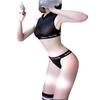 Lencería sexy Milian con bordado de cuello halter, falda de malla a la cadera, cintura reveladora, hermosa espalda, deseo puro, vestido sexy, temperamento de secretaria