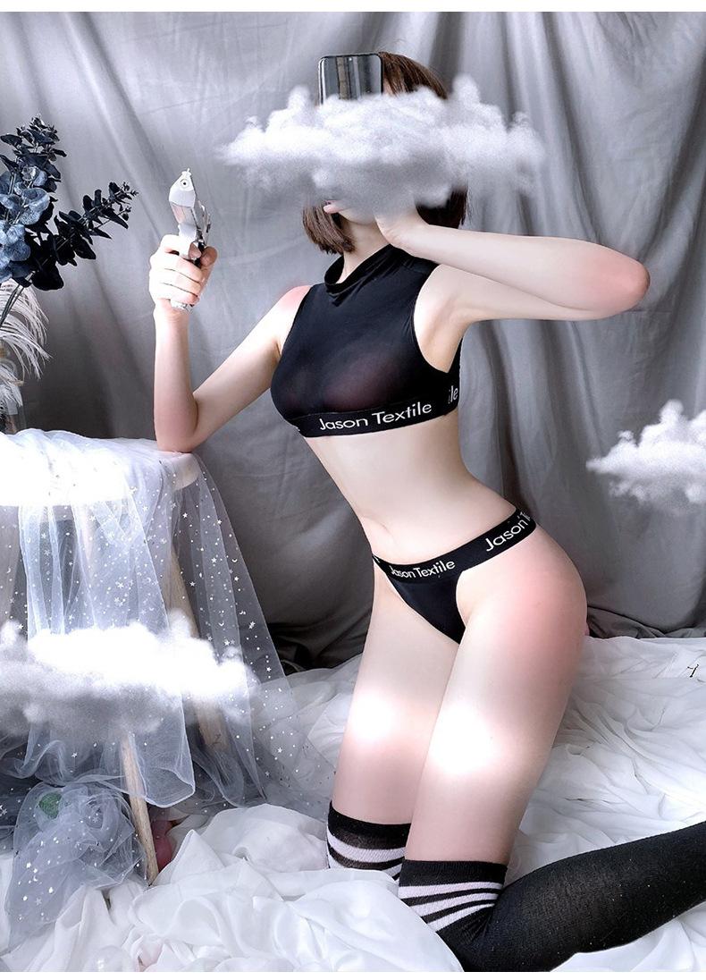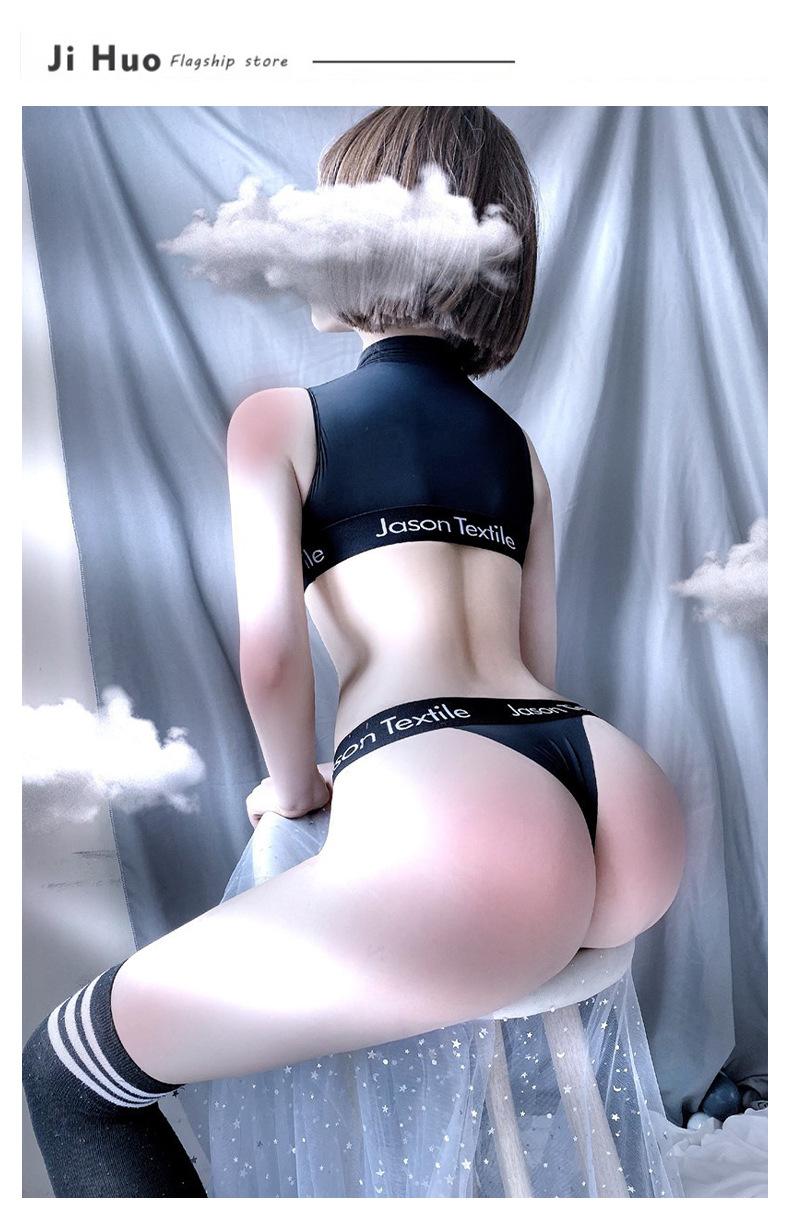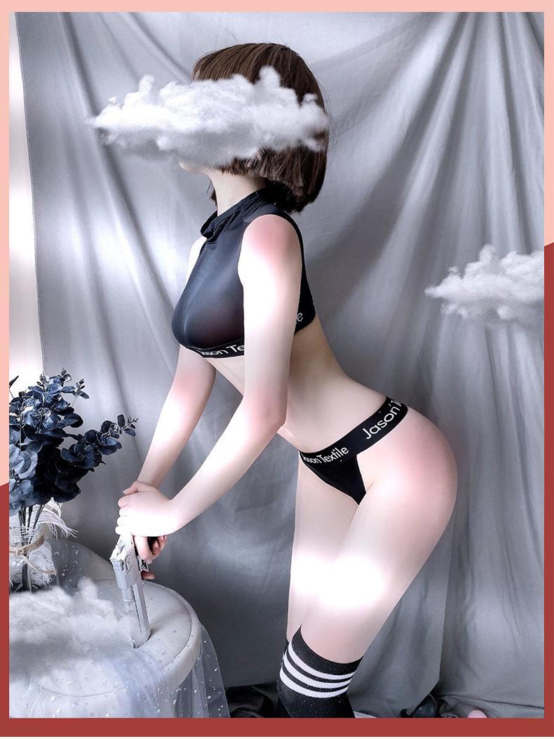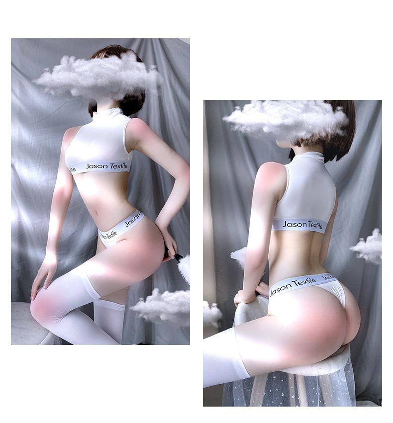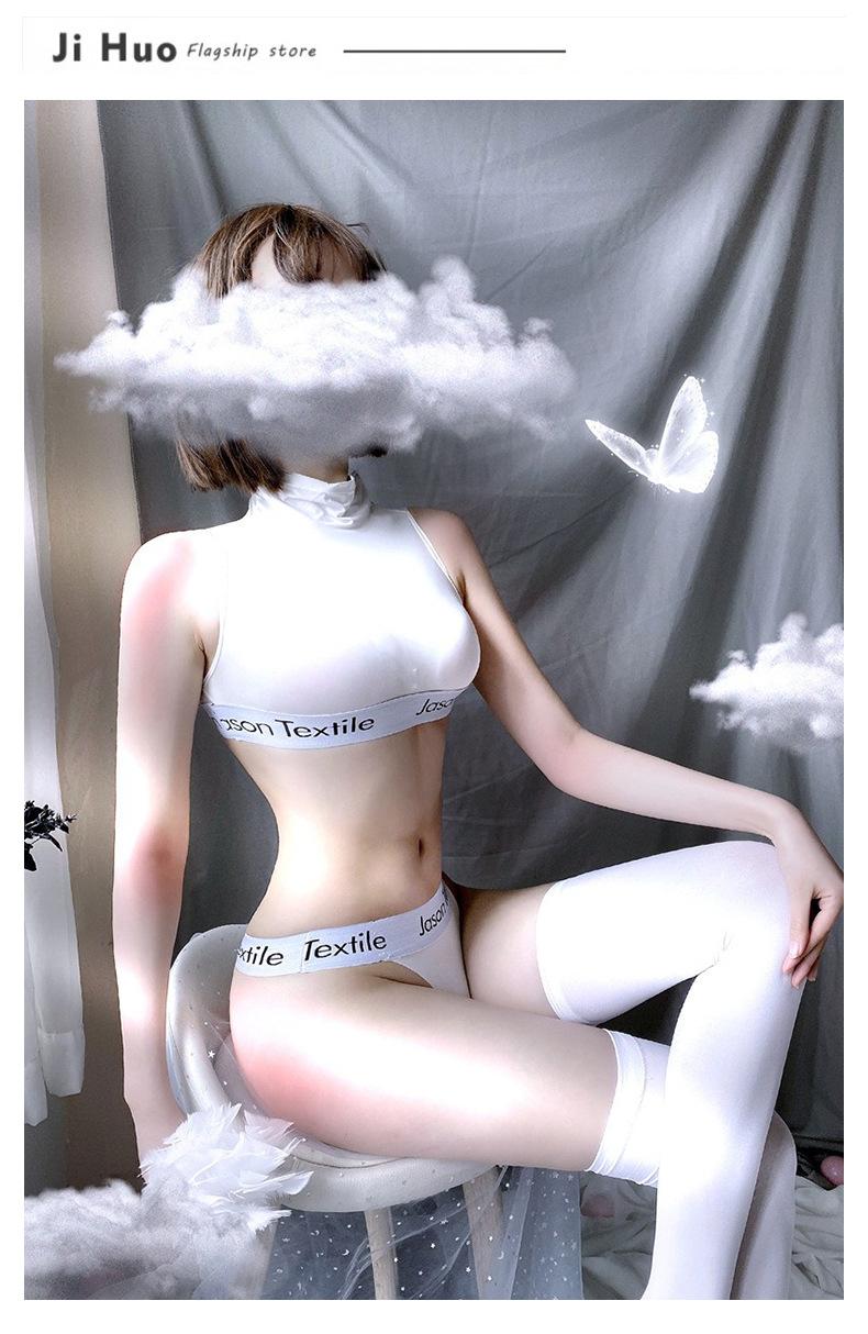 Ropa interior sexual de amor, uniforme, traje de baño de seda de hielo, conjunto sexy ajustado de dos piezas, ropa de pasión pura, agua muerta