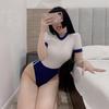 Traje de una pieza de Ropa Interior Sexy Amorosa Tentación Traje de Baño Sexy Ajustado Traje Puro de Colegio Uniforme Ajustado Sin Entrepierna