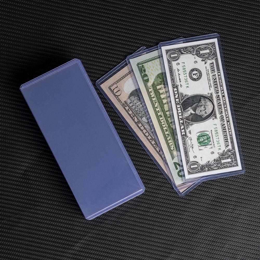 Los tarjeteros de PVC para billetes regulares no contienen plastificantes ni estearatos. Nuestro PVC de alta calidad no migrará ni dañará sus tarjetas, acciones, documentos, fotos o divisas, al tiempo que proporciona máxima protección y atractivo visual.